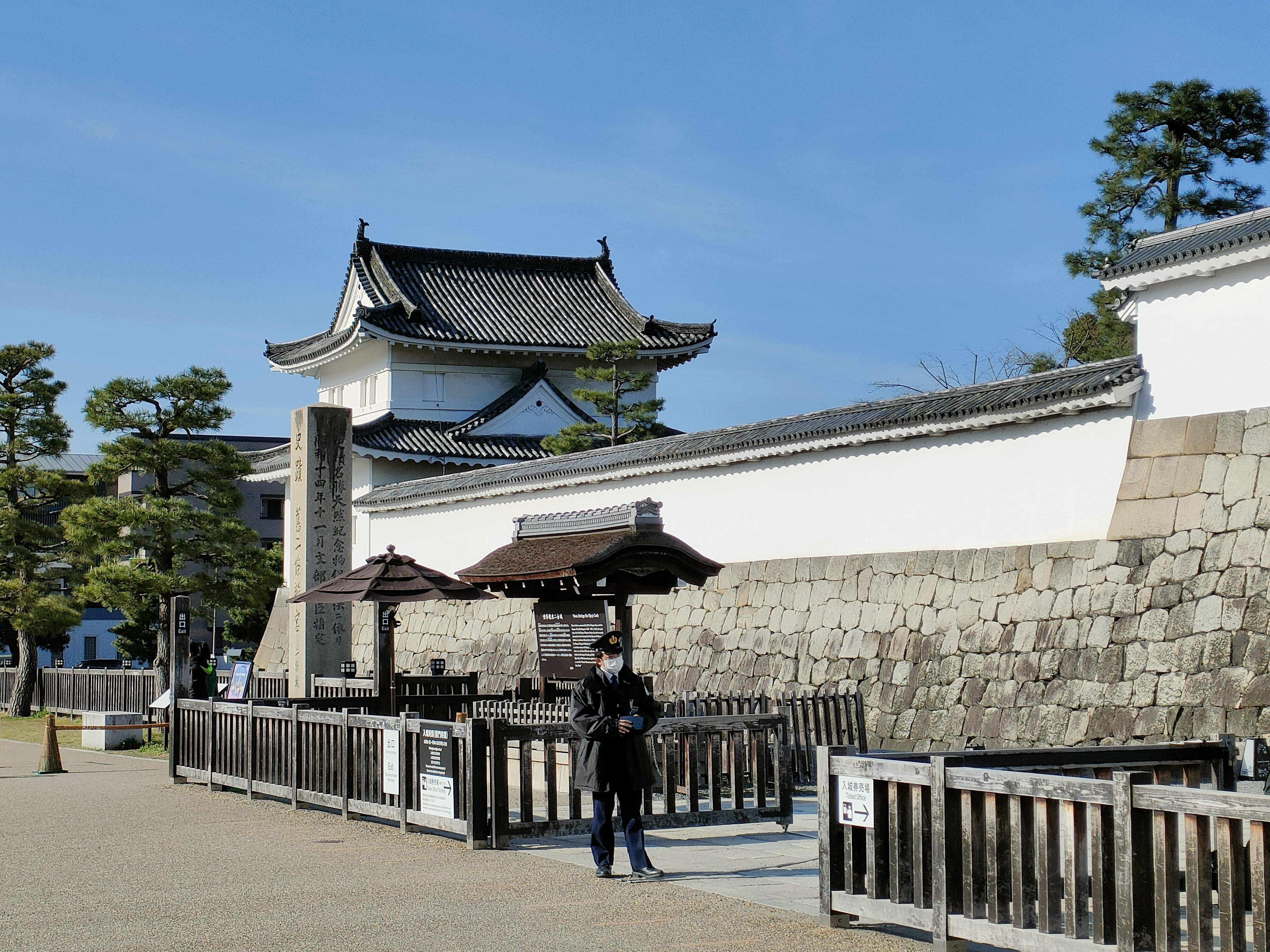 朝一番、二条城開門前に到着しました。外堀周りをブラブラとしていると、通勤・通学で多くの人が移動しているのが目に入ります。その中に、外国の方も多くみられさすが観光の都市京都だなと一人感心していました。