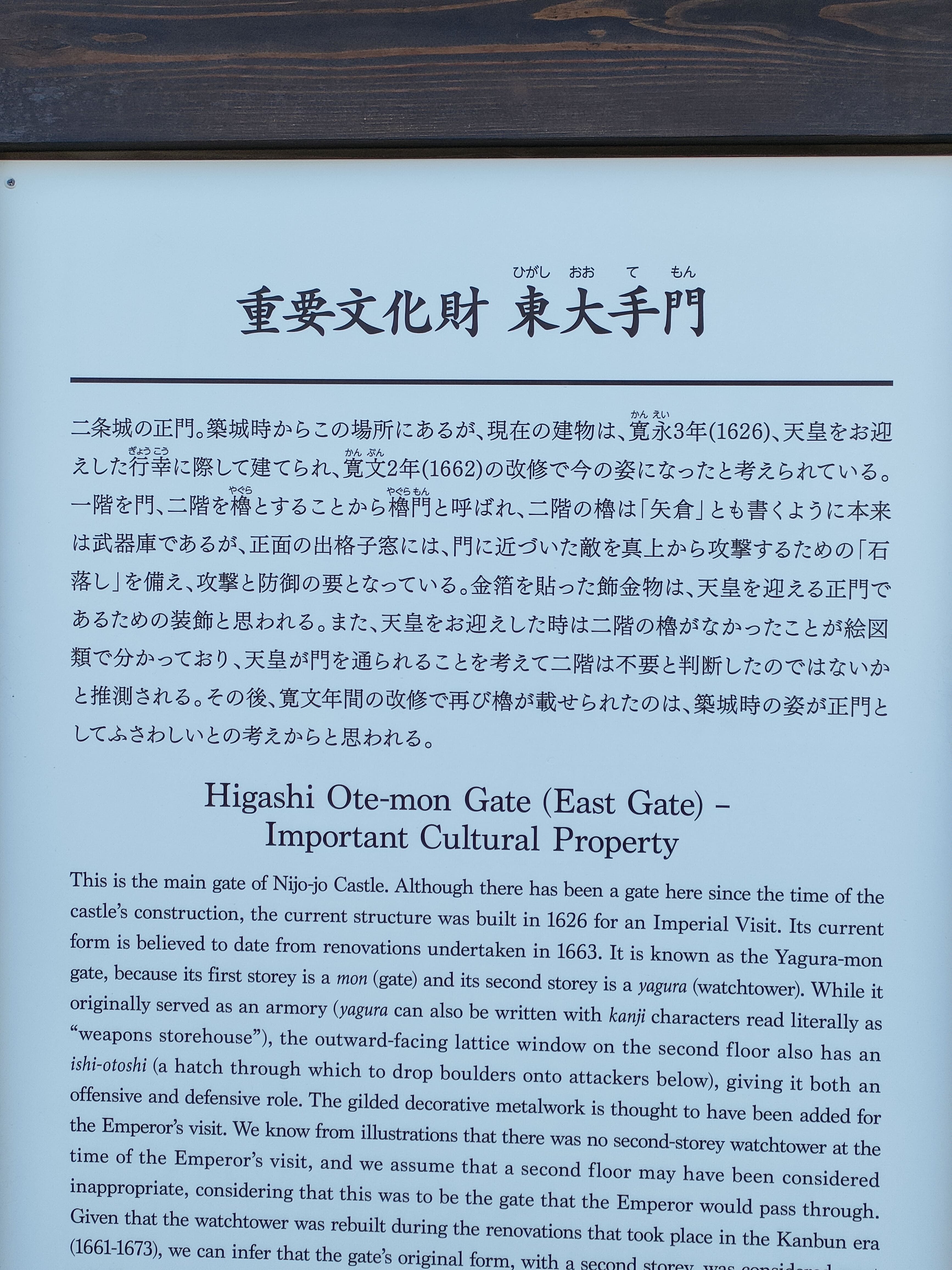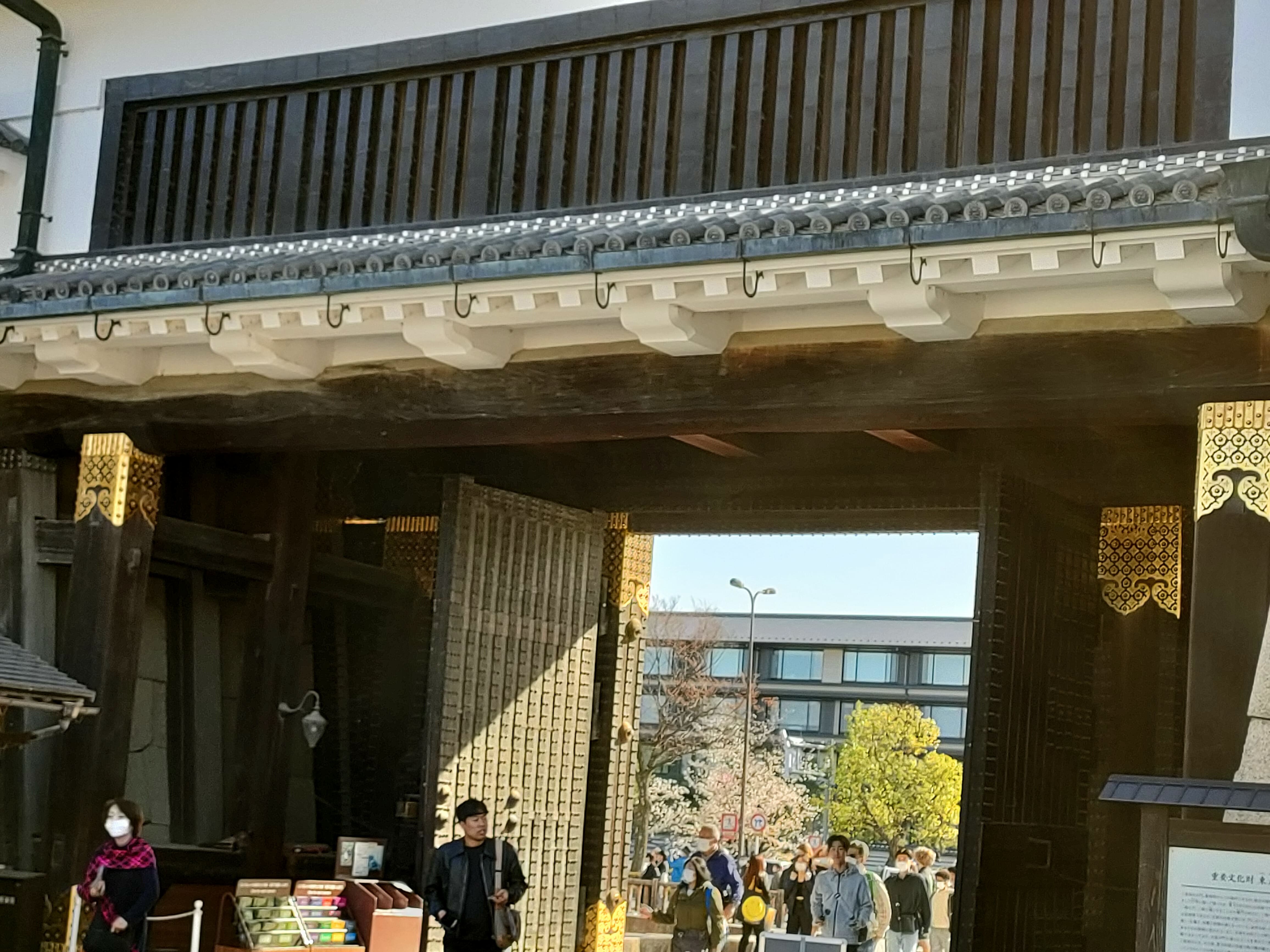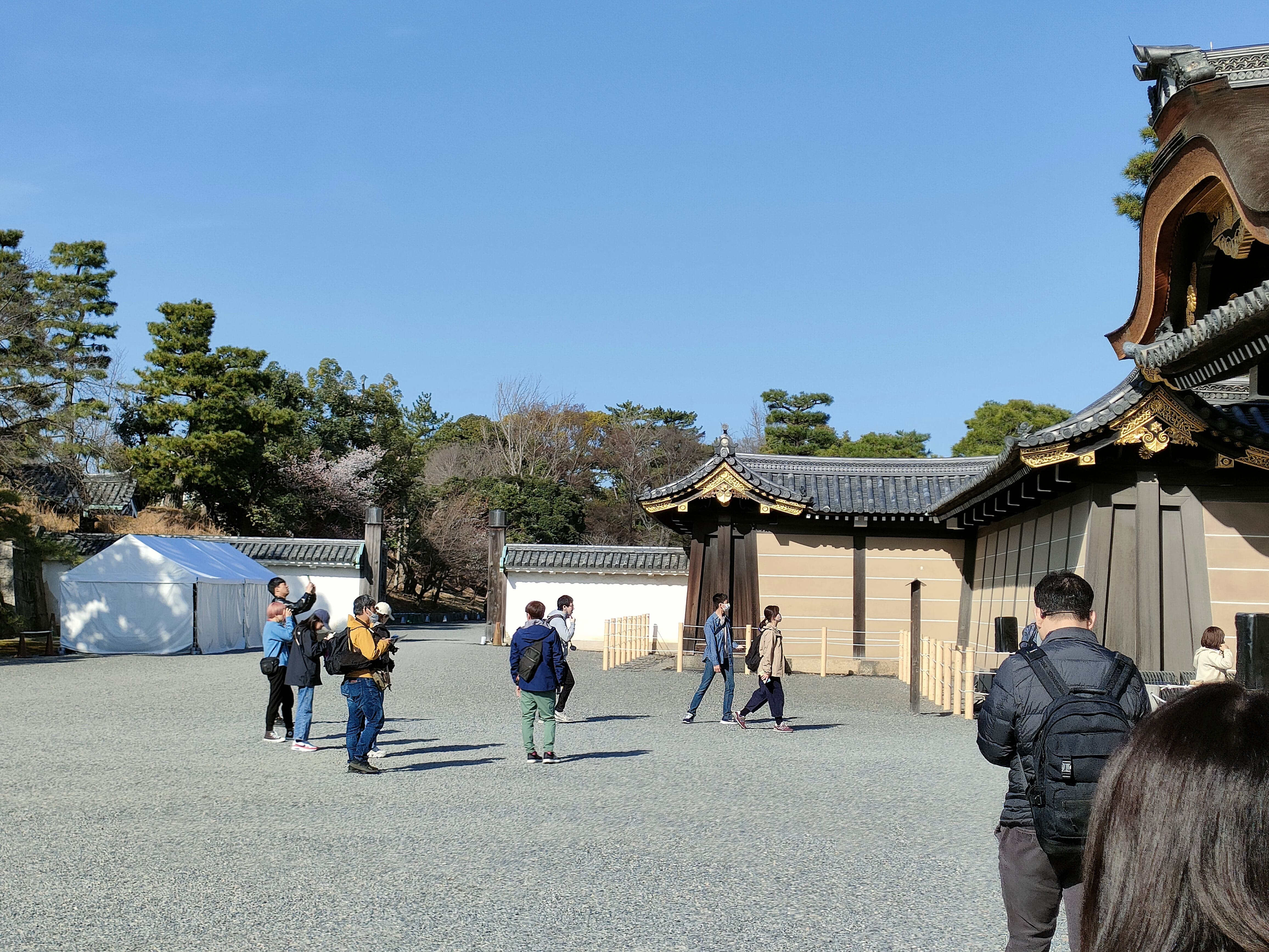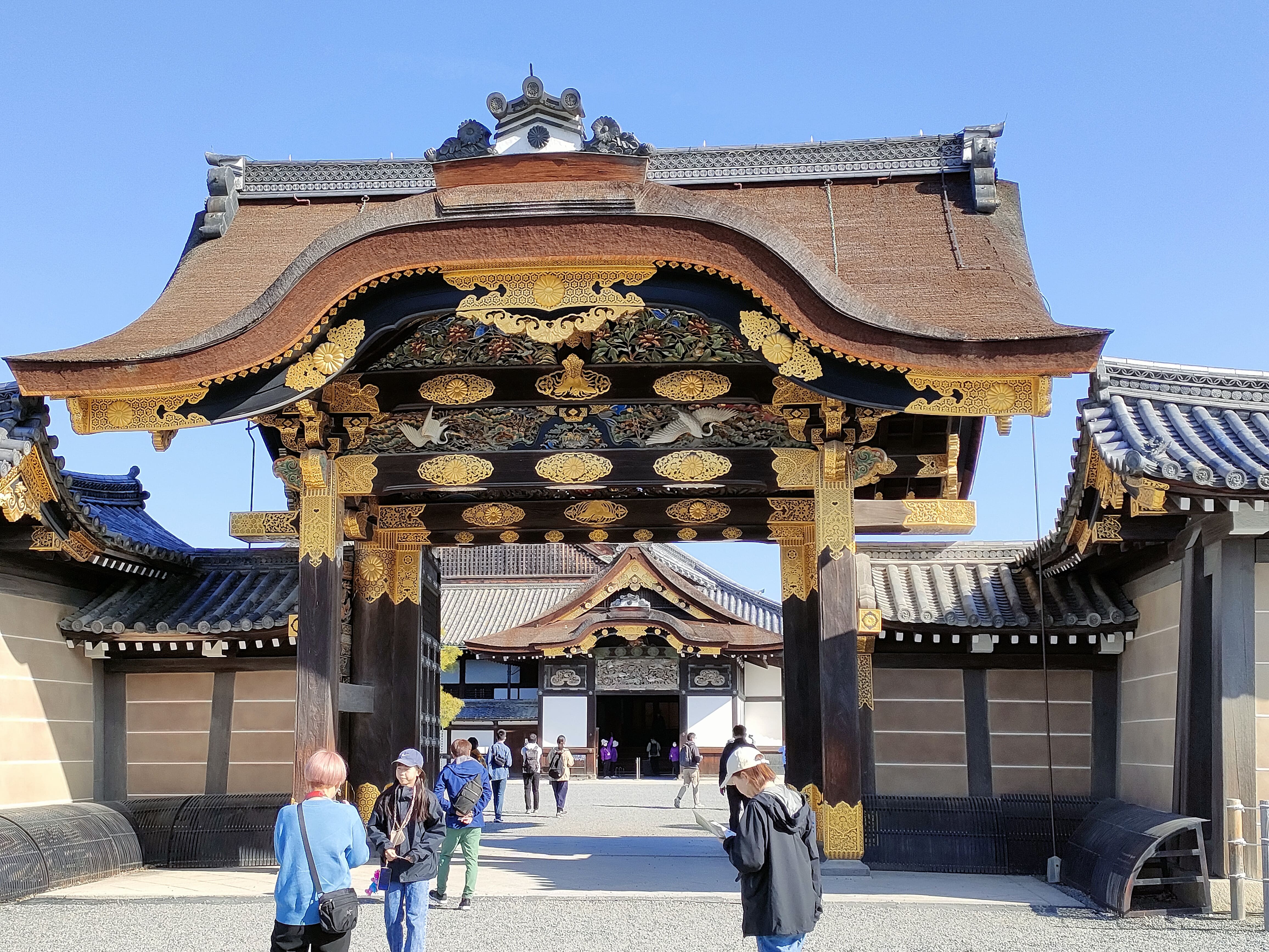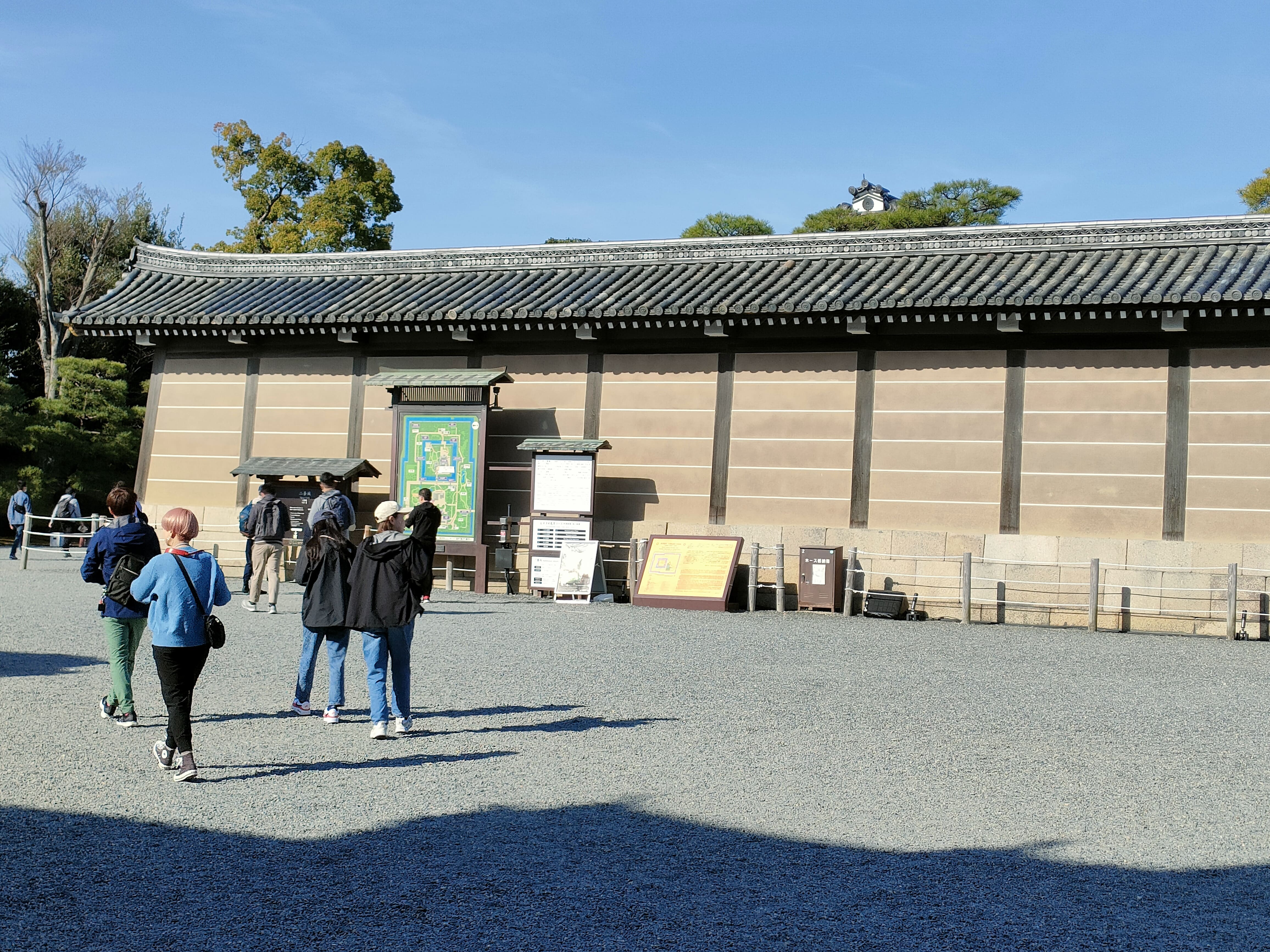 平日にもかかわらず、開門前には多くの人が列をなしていました。そして開門と同時に多くの方々が二条城に吸い込まれて行きました。個人的な見解としては、二条城はお城と名は付きますが、「戦のための」というより「政治のための」的なイメージが強いですね。家康の戦勝時、江戸幕府をたたんだ大政奉還時、から受ける印象です。