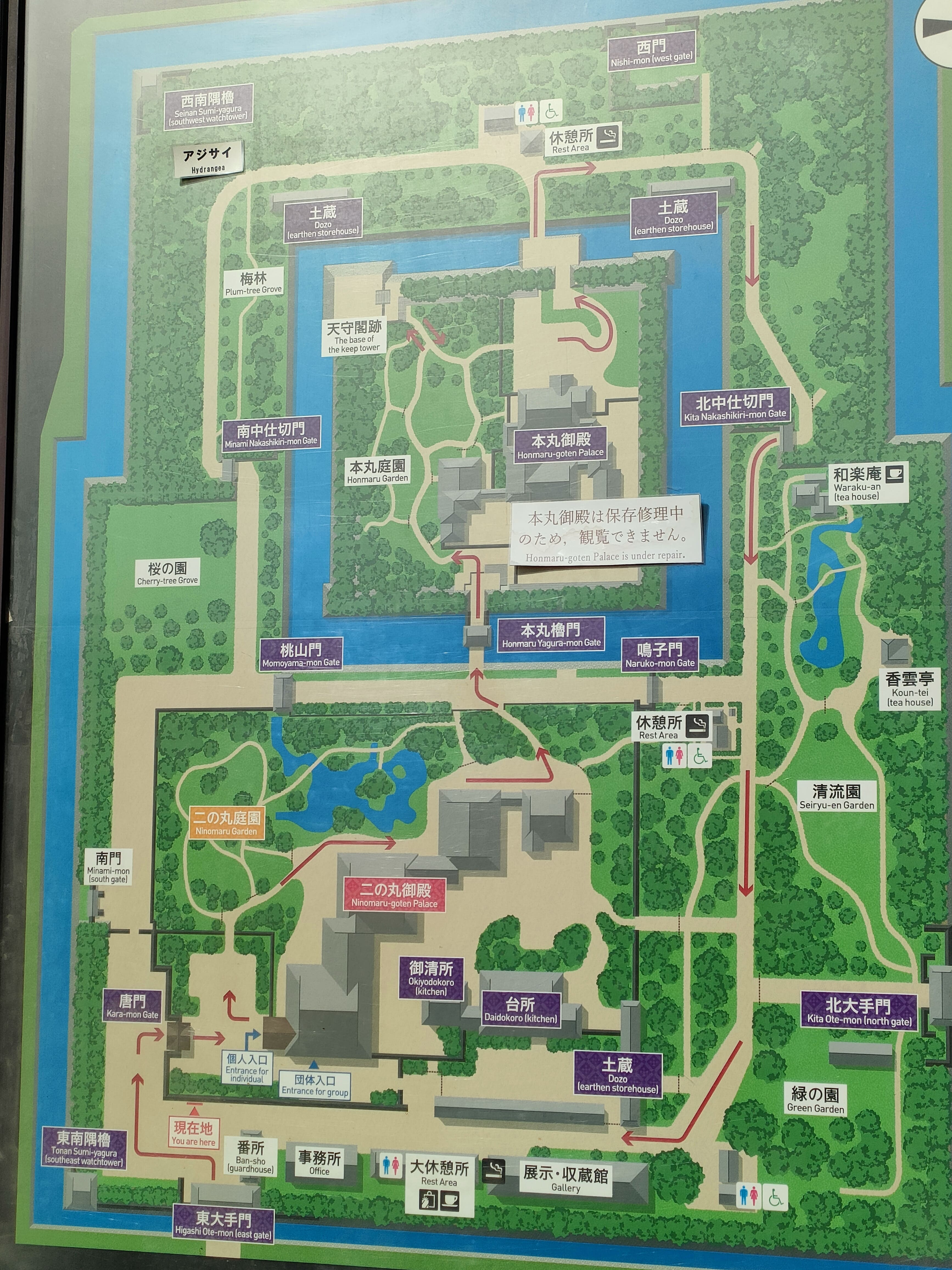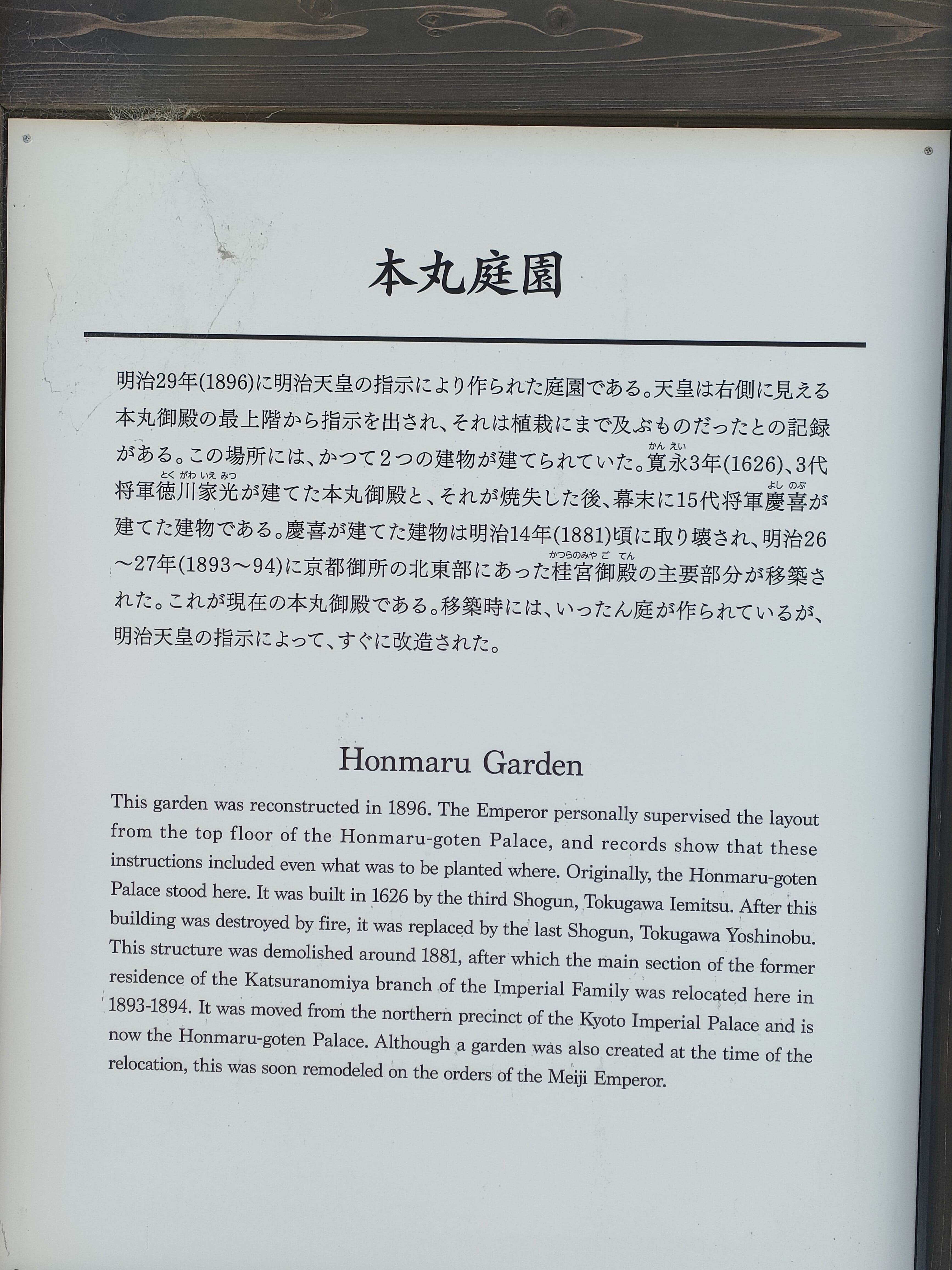 二の丸御殿内は撮影禁止でしたので、御殿内の映像は全くありません(涙)。御殿を拝見しそのあとのルートは二の丸庭園。きれいに手入れされており、歴代の偉人達もこれと似たような風景を見ていたのでしょうか。