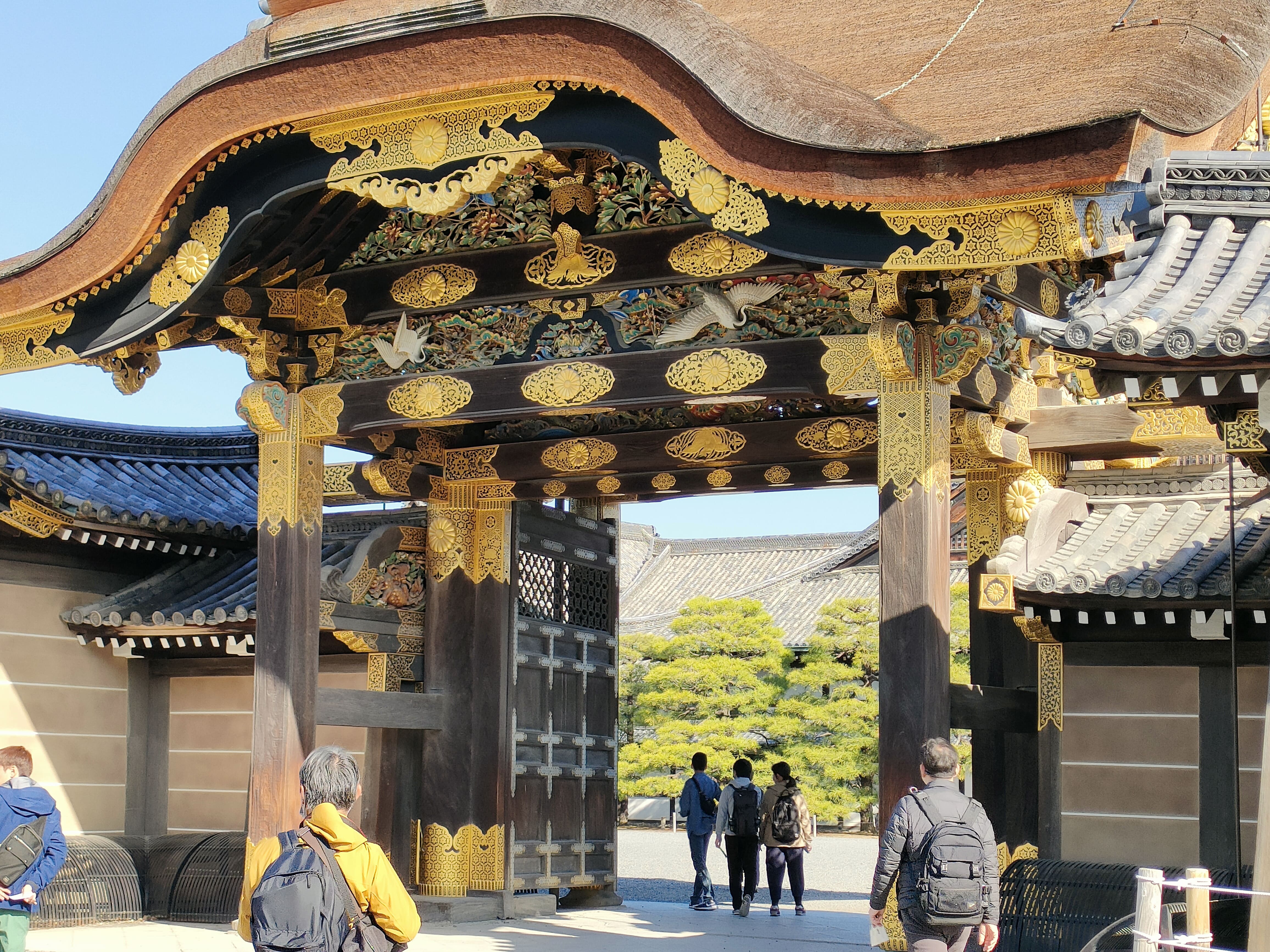 その後、三代将軍・徳川家光(とくがわ いえみつ)の時代に、二条城は大きく姿を変えます。寛永3年(1626年)、家光は後水尾天皇(ごみずのおてんのう)の「行幸(ぎょうこう)」を迎えるため、城を大規模に改修・拡張しました。このとき、豪華絢爛な二の丸御殿が完成。内部は狩野派(かのうは)の絵師による障壁画で彩られ、歩くたびに「キュッキュッ」と音が鳴る鶯(うぐいす)張り廊下など、当時の技術と美意識の粋が集められました。この行幸は、徳川幕府の権威を朝廷に対して明確に示す、政治的にも重要な出来事でした。
