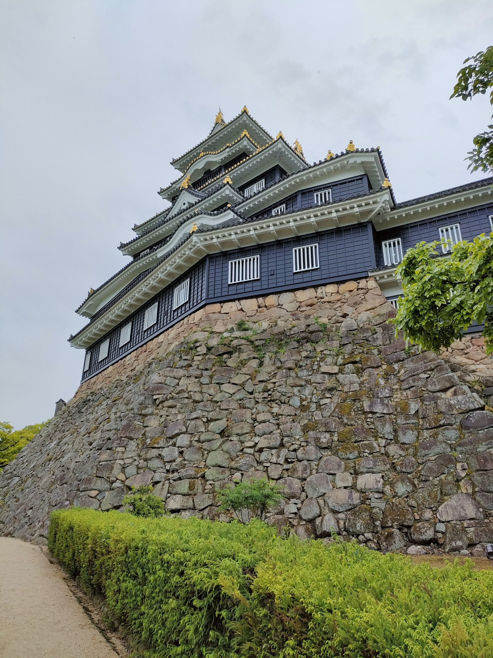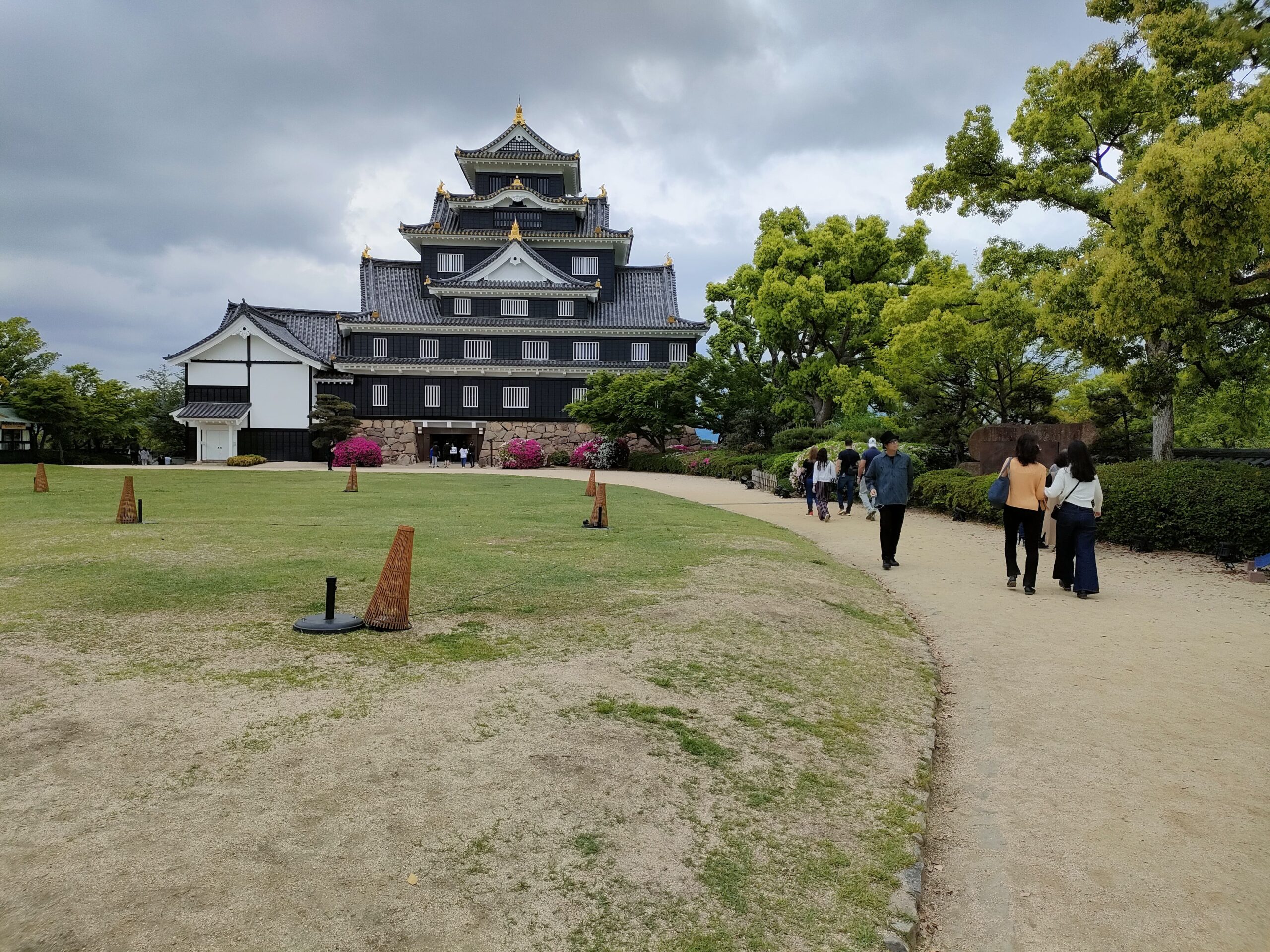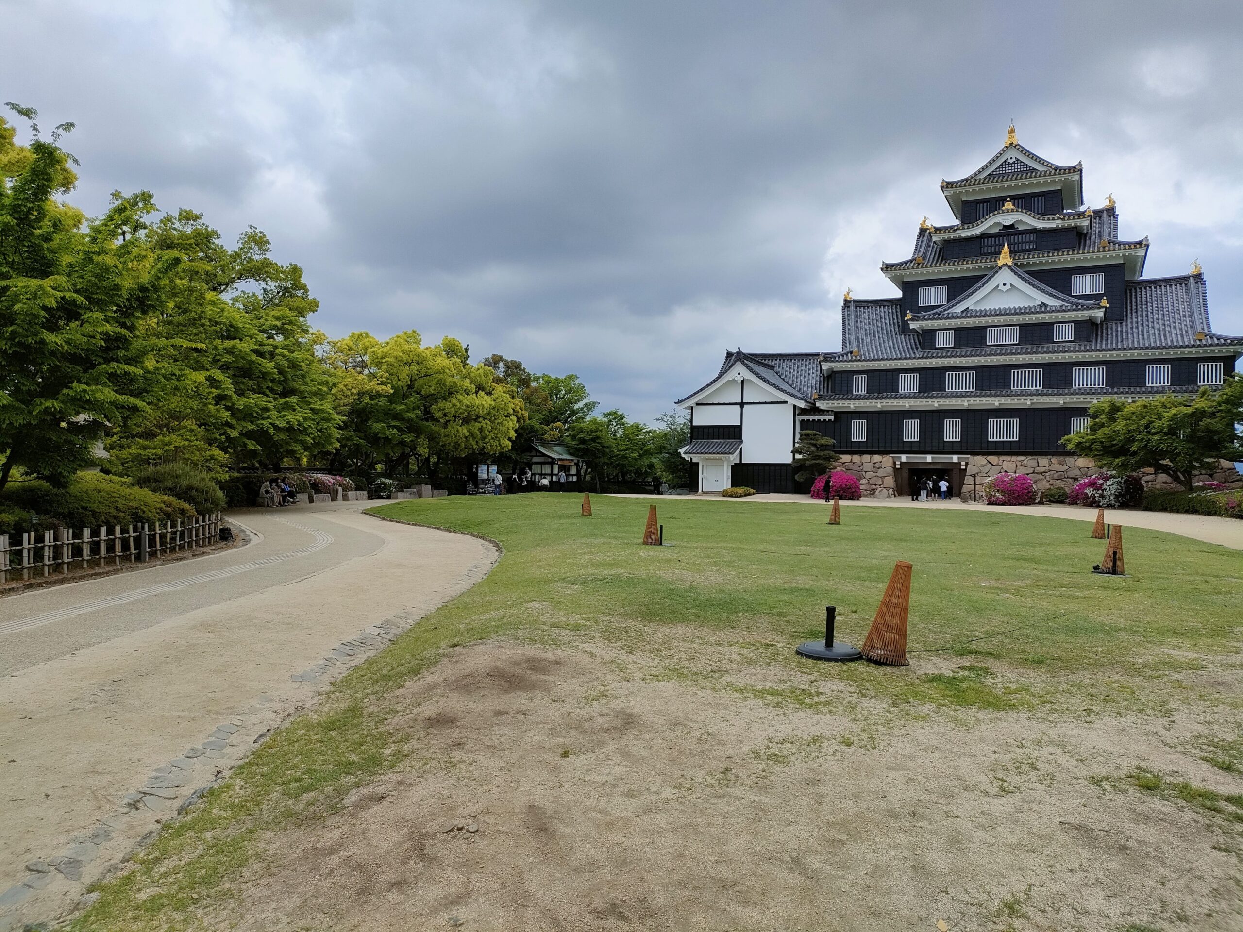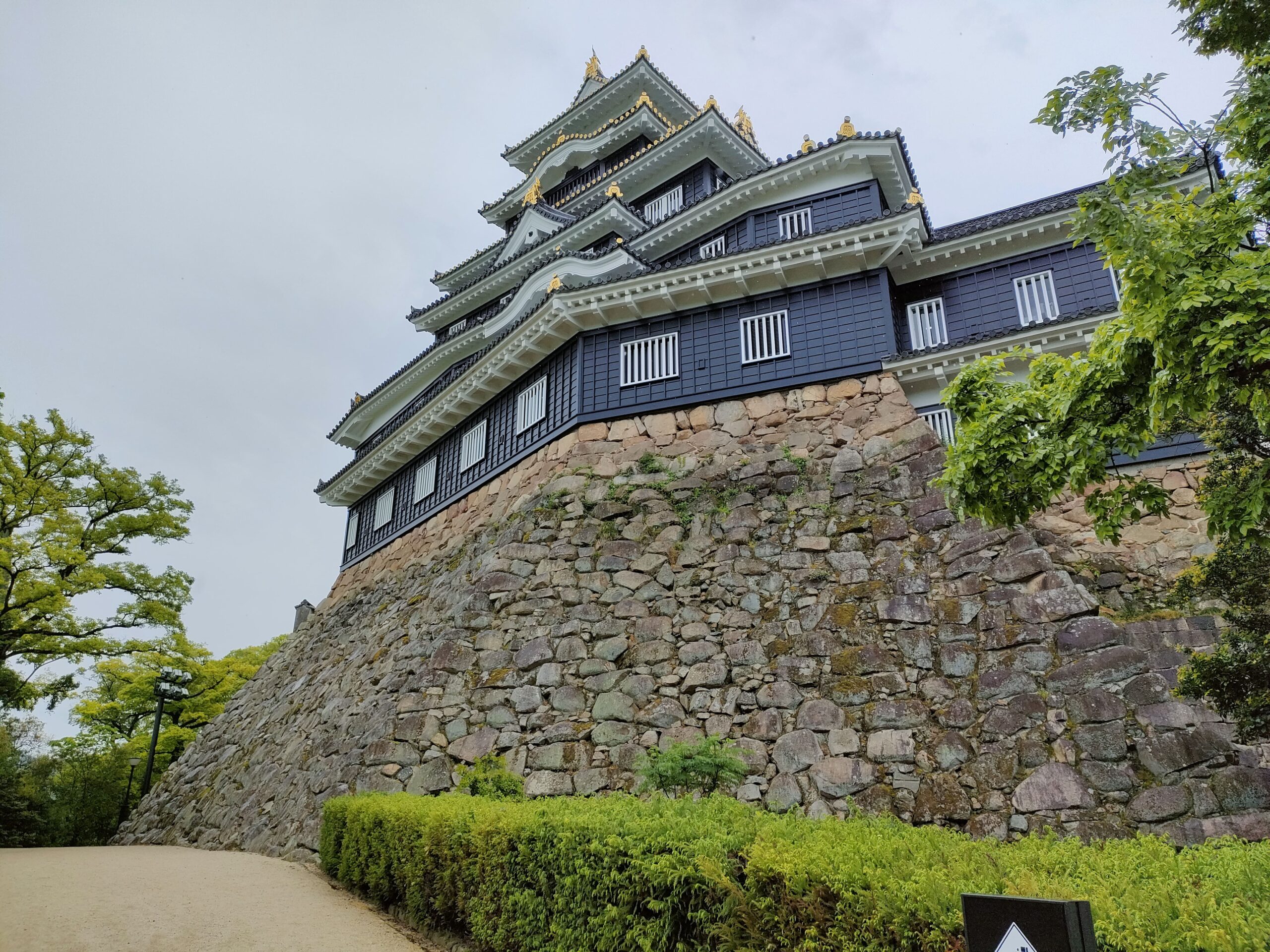 曇り空の下、岡山城を訪れました。岡山城では大丈夫だった雨も、お隣の後楽園を散策することには大雨に。傘をさしながらの散歩となってしまいました。岡山城は期待していた通りのかっこよさでした。黒を基調とした外観は、松本城などと同様に渋さというか重厚さというか、重みを感じます。