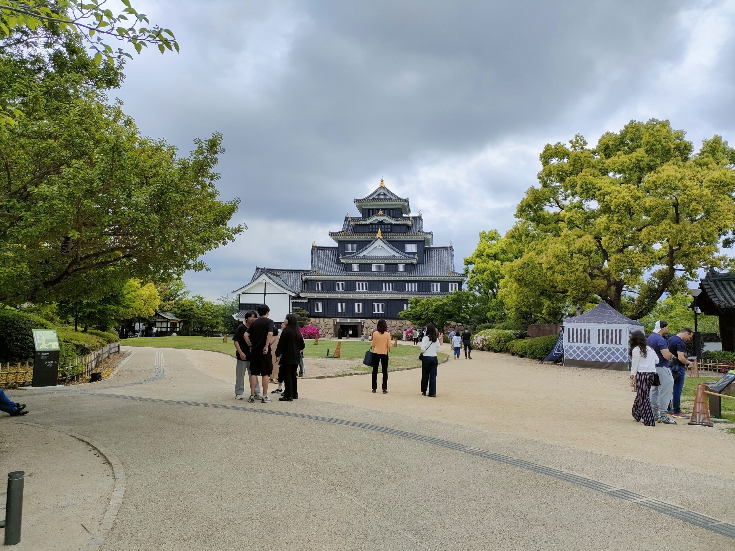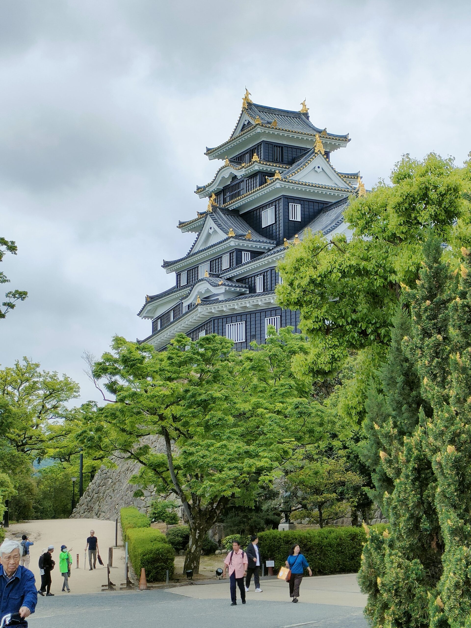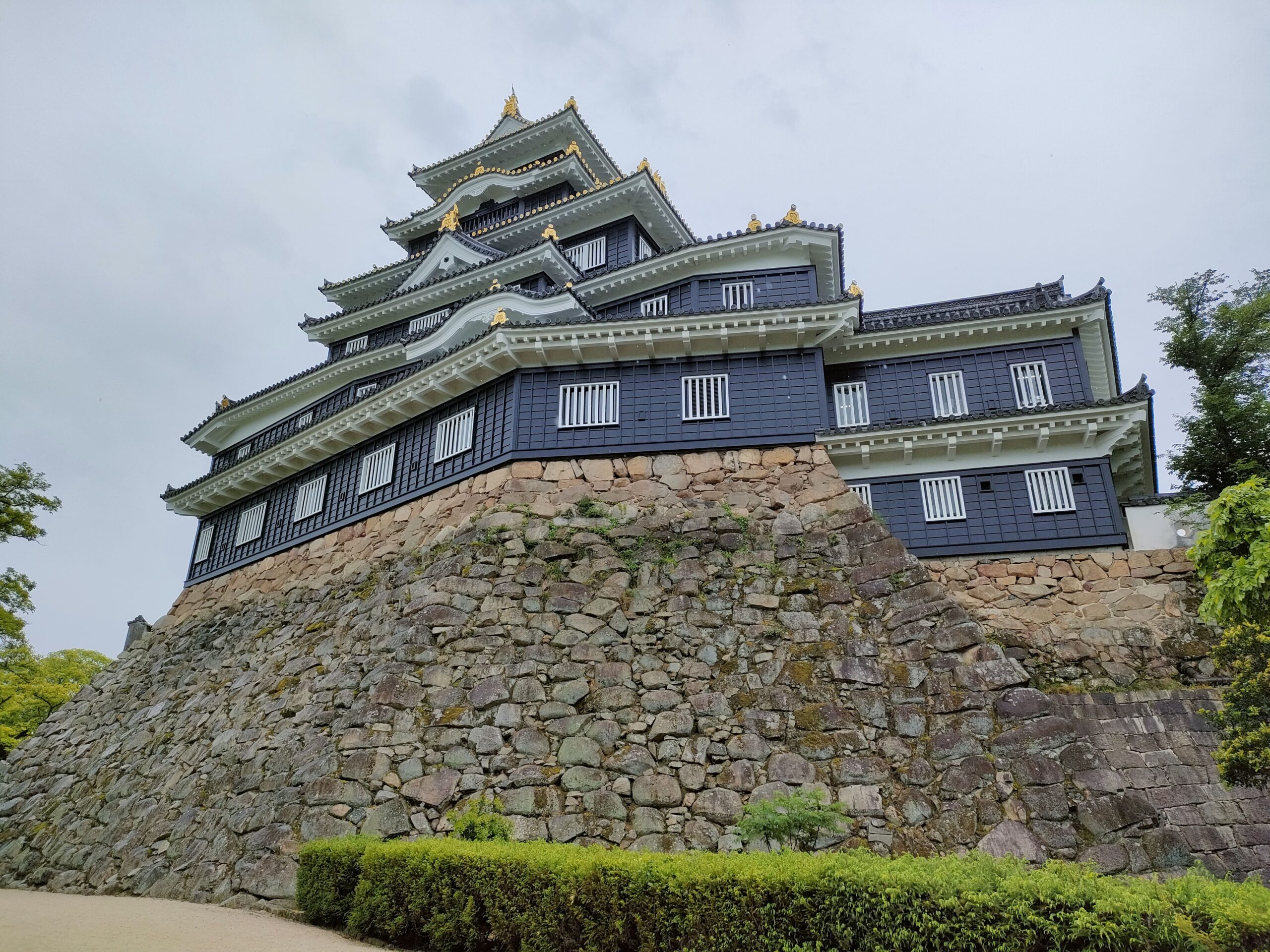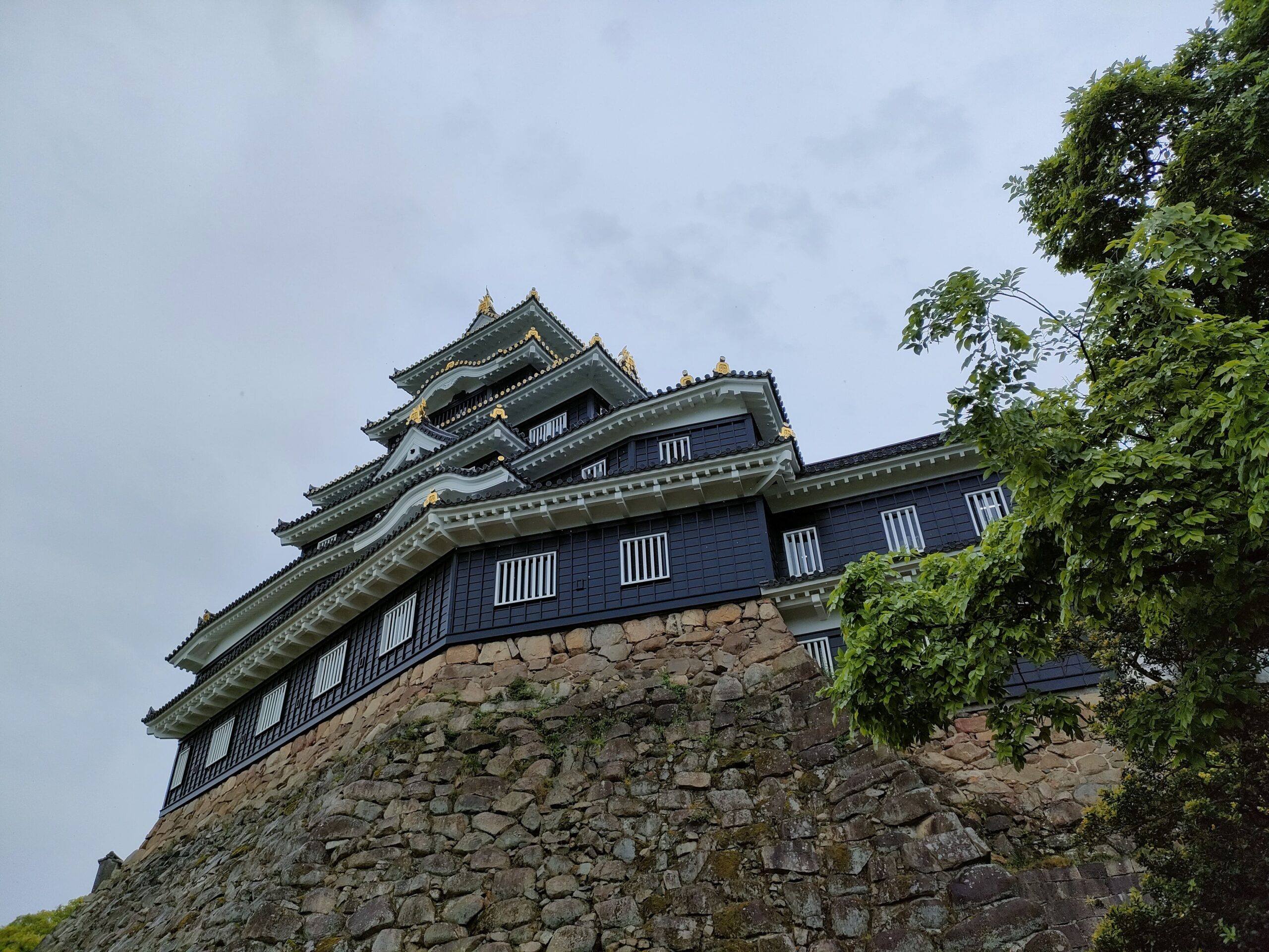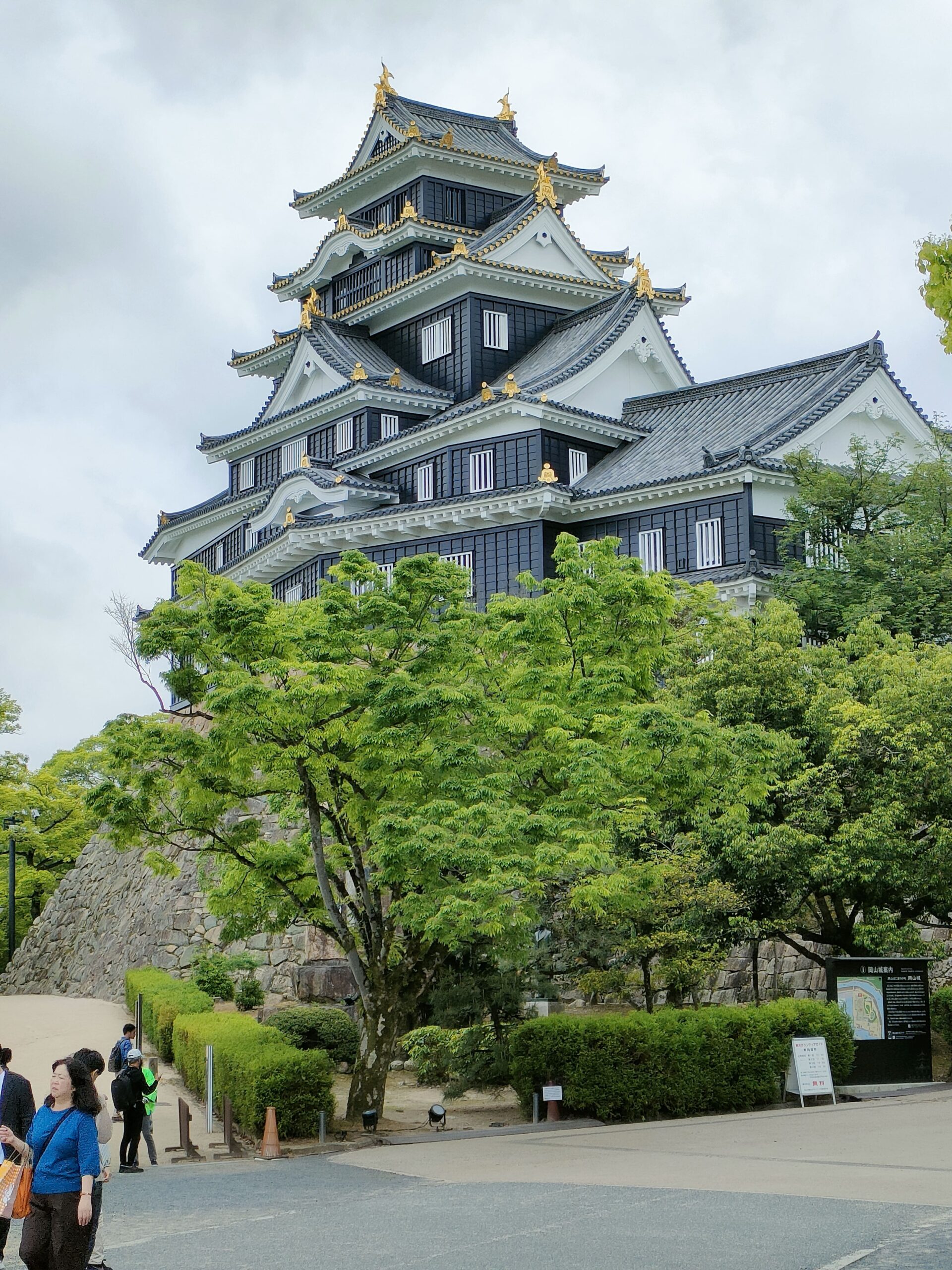 曇り空の下、岡山城を訪れました。岡山城では大丈夫だった雨も、お隣の後楽園を散策することには大雨に。傘をさしながらの散歩となってしまいました。岡山城は期待していた通りのかっこよさでした。黒を基調とした外観は、松本城などと同様に渋さというか重厚さというか、重みを感じます。