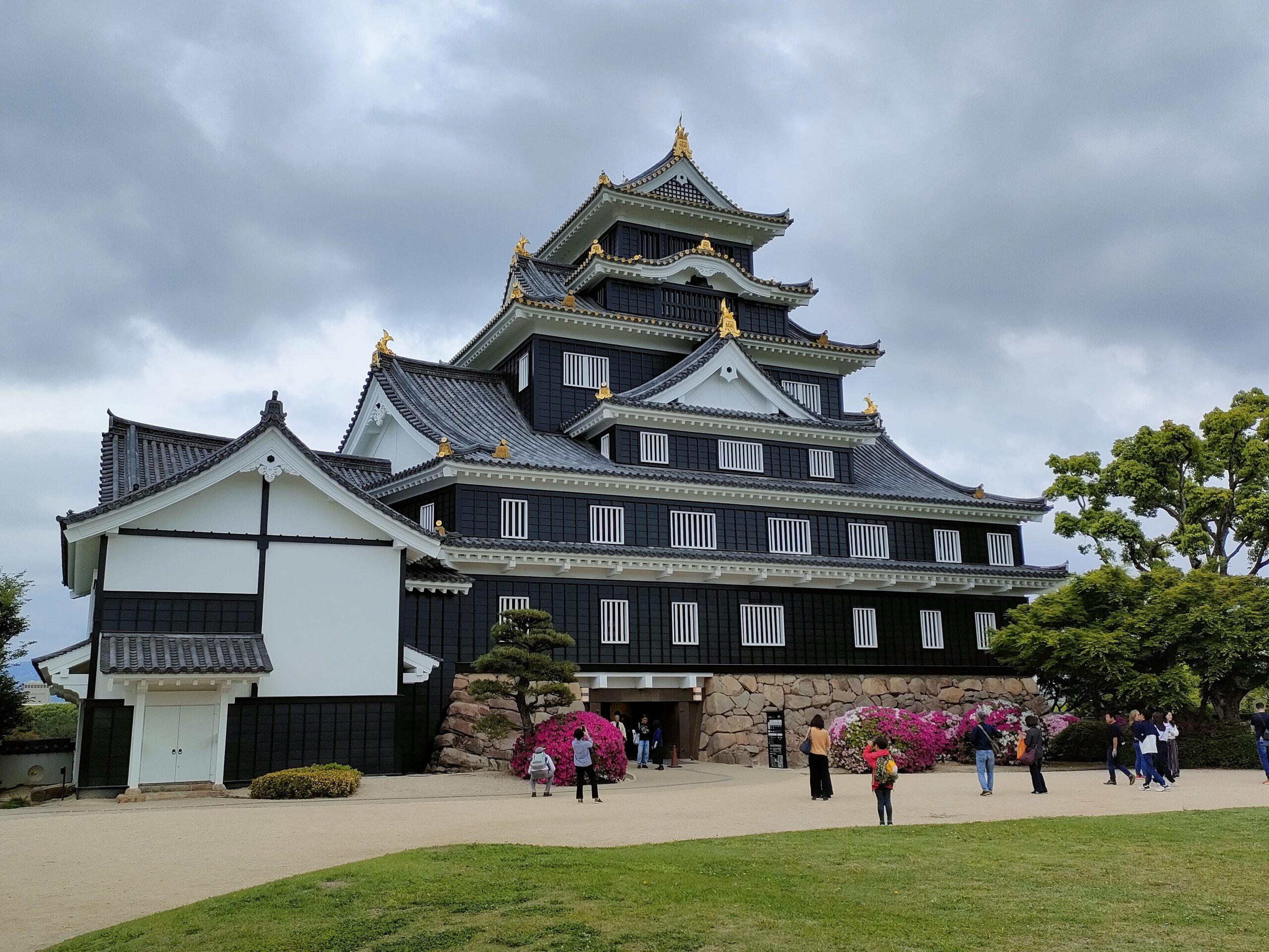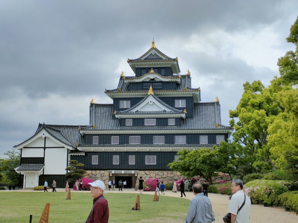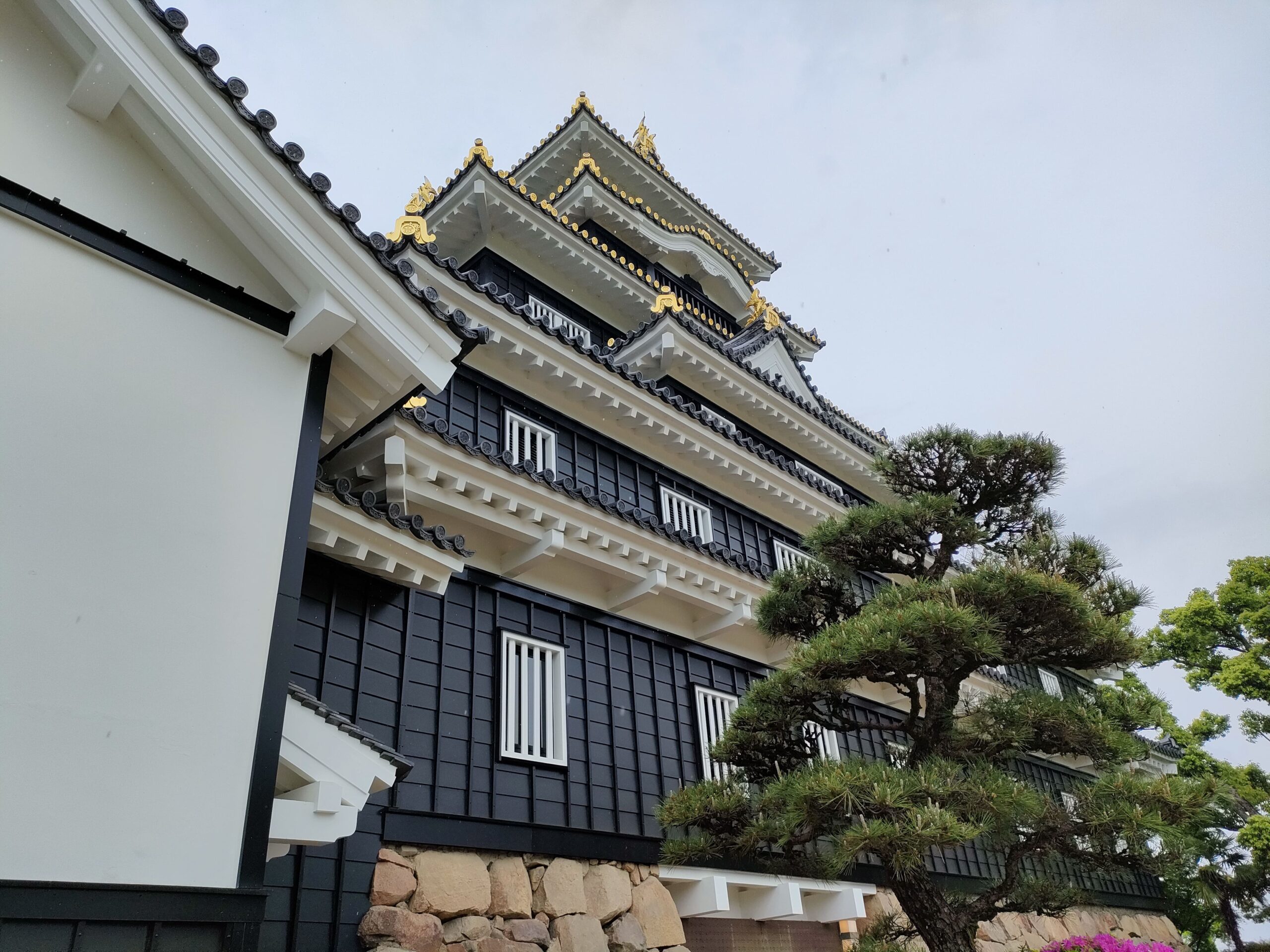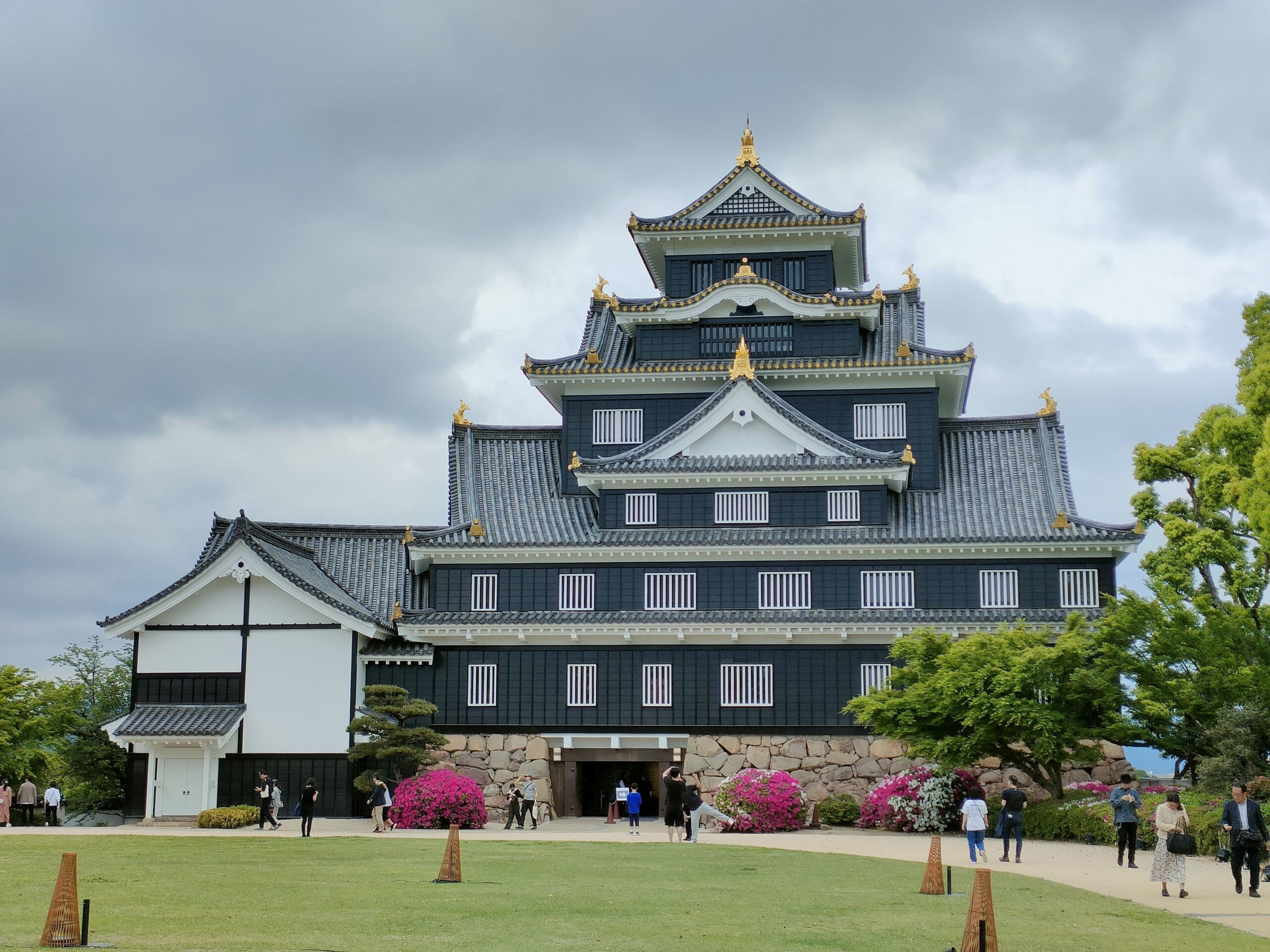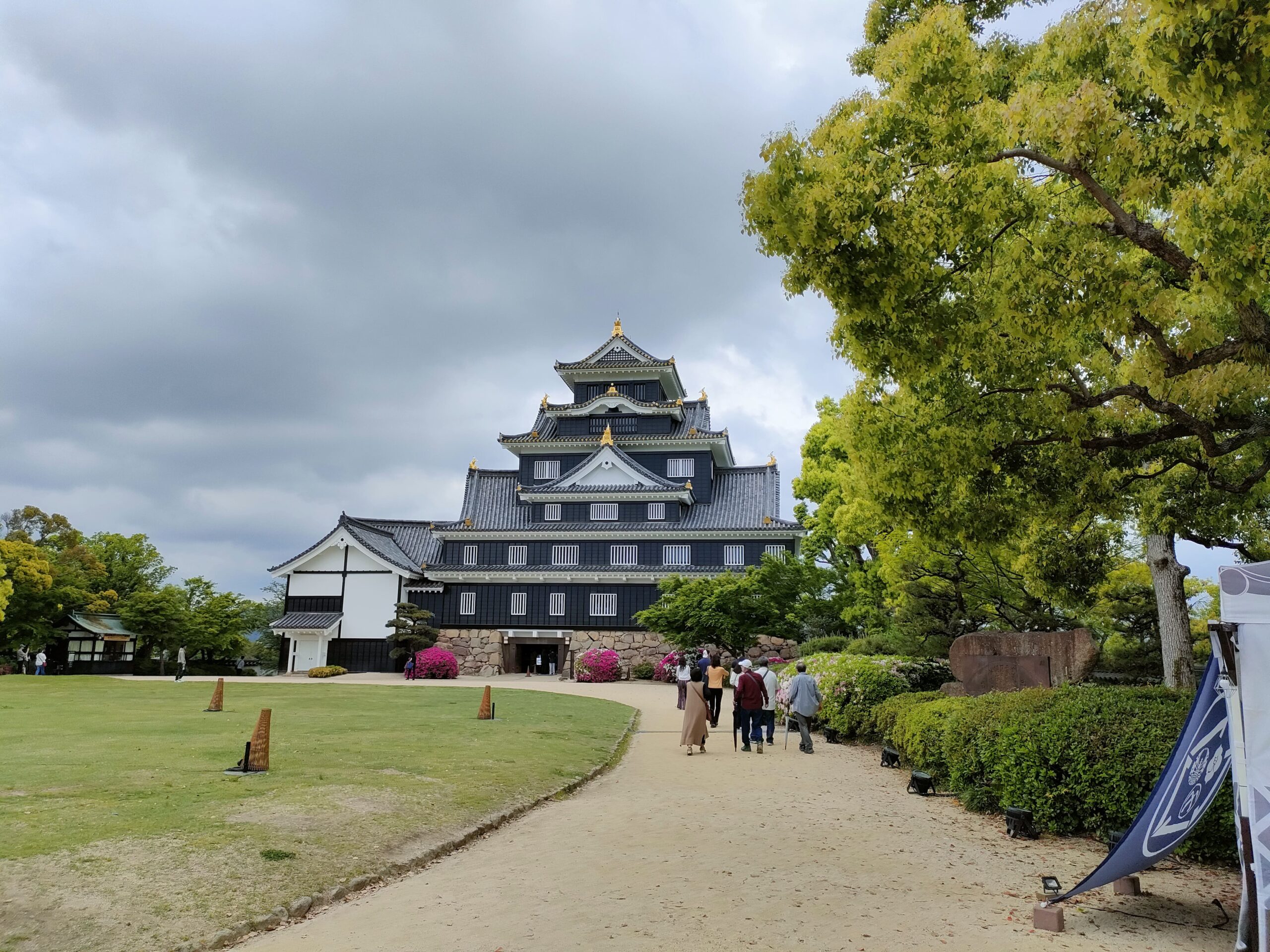 曇り空の下、岡山城を訪れました。岡山城では大丈夫だった雨も、お隣の後楽園を散策することには大雨に。傘をさしながらの散歩となってしまいました。岡山城は期待していた通りのかっこよさでした。黒を基調とした外観は、松本城などと同様に渋さというか重厚さというか、重みを感じます。