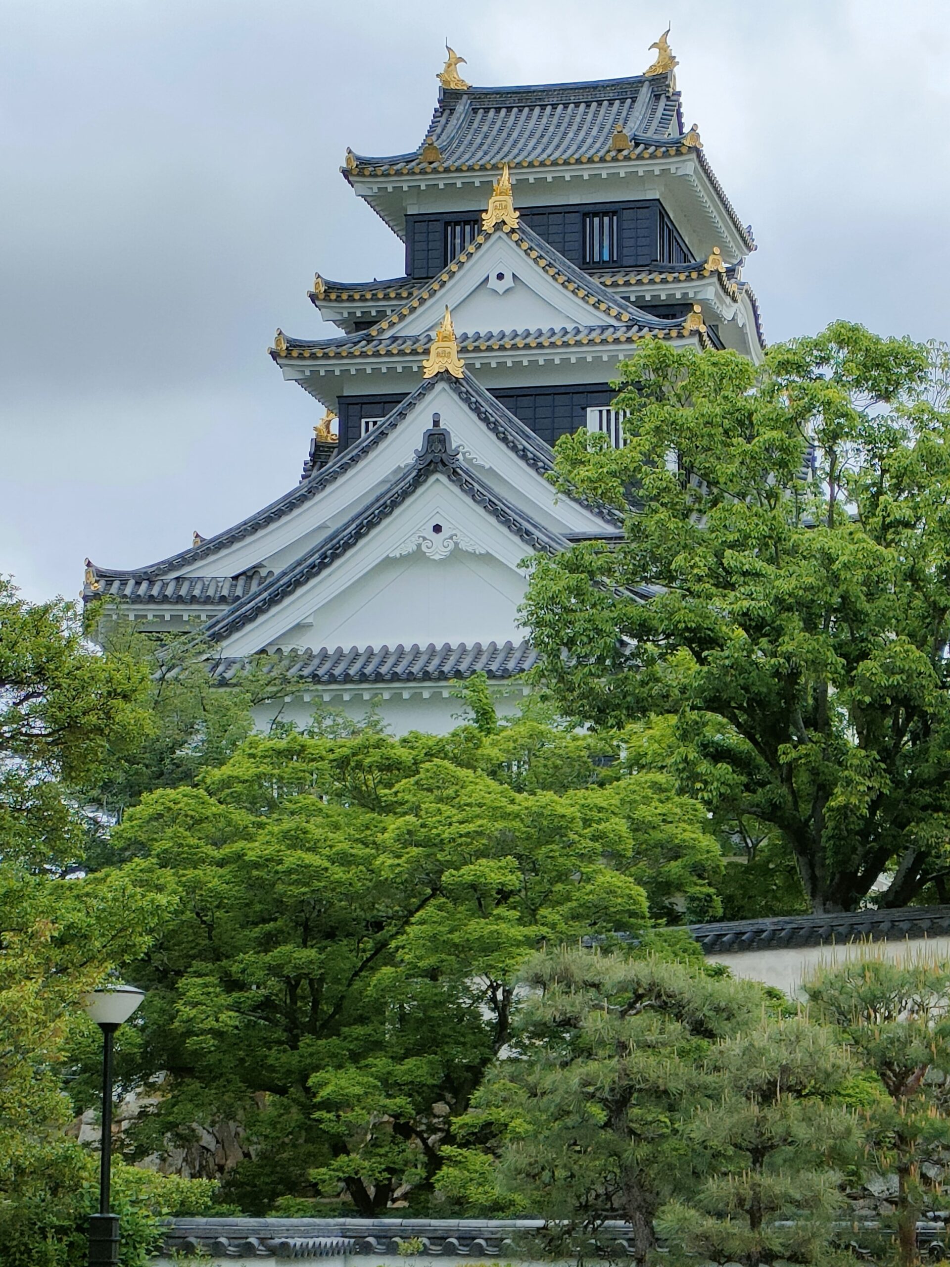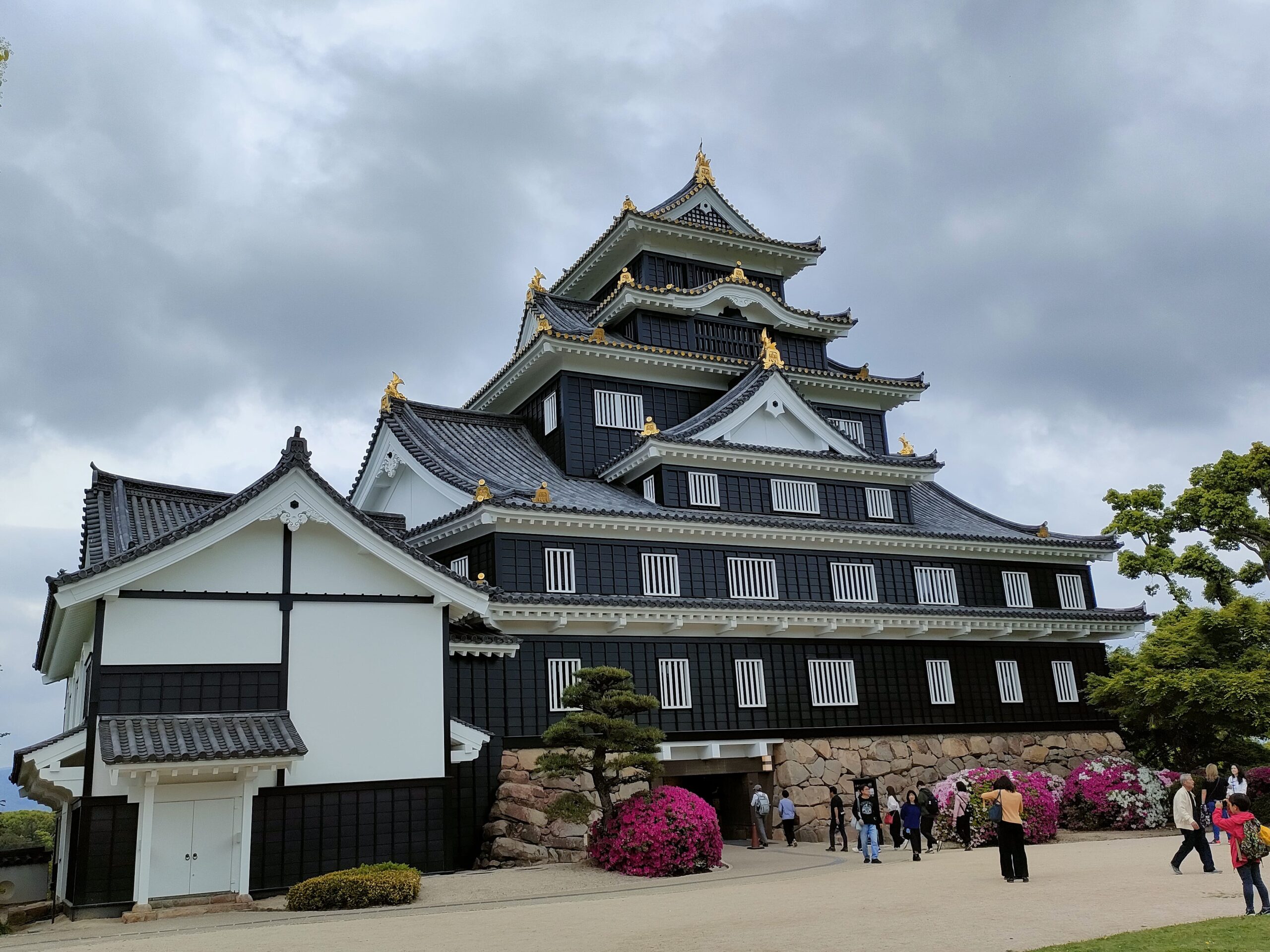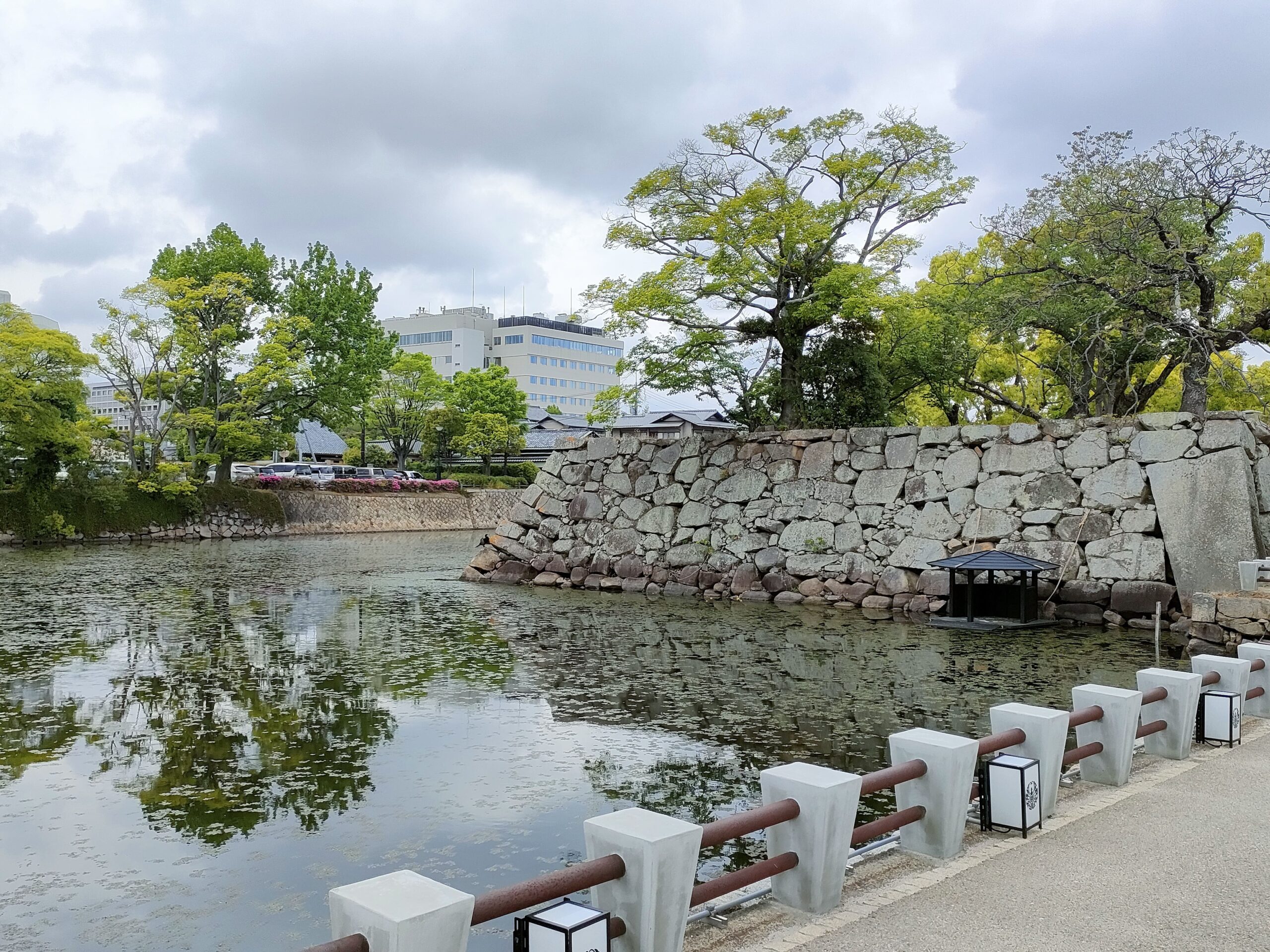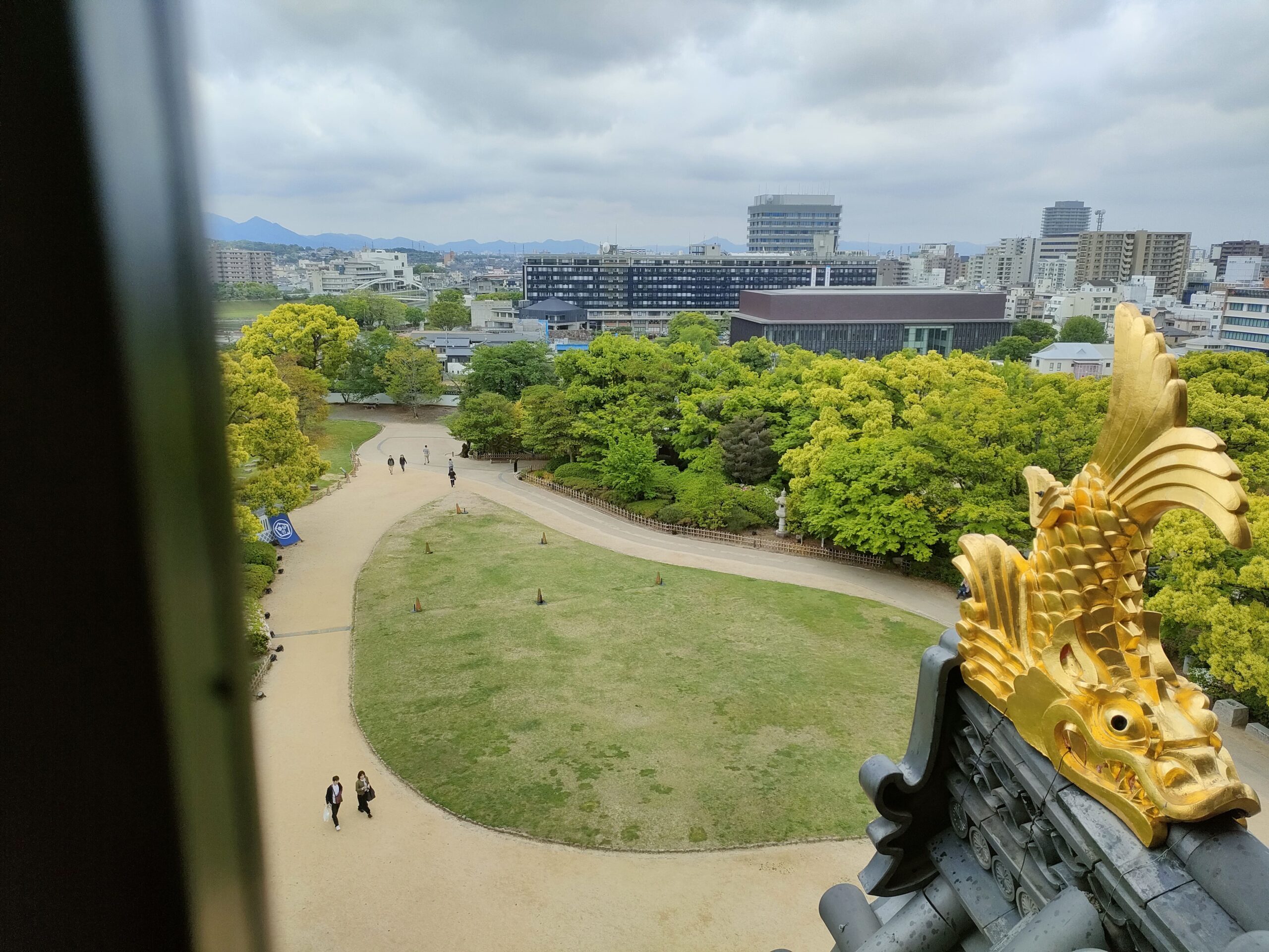 曇り空の下、岡山城を訪れました。岡山城では大丈夫だった雨も、お隣の後楽園を散策することには大雨に。傘をさしながらの散歩となってしまいました。岡山城は期待していた通りのかっこよさでした。黒を基調とした外観は、松本城などと同様に渋さというか重厚さというか、重みを感じます。