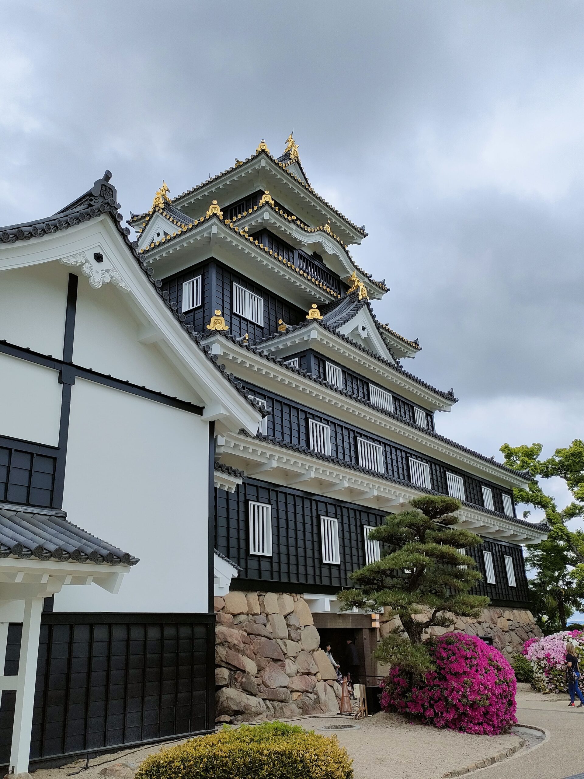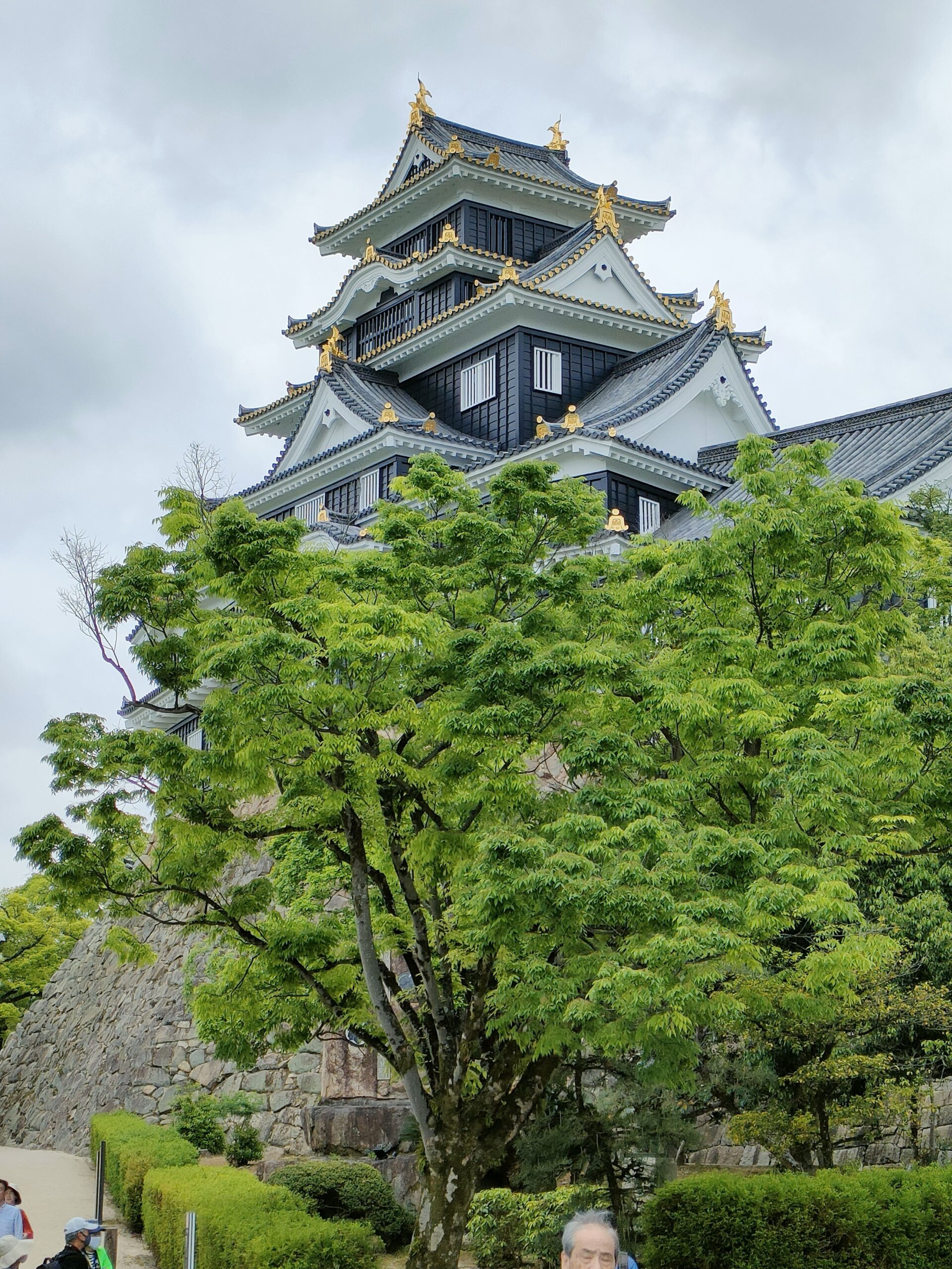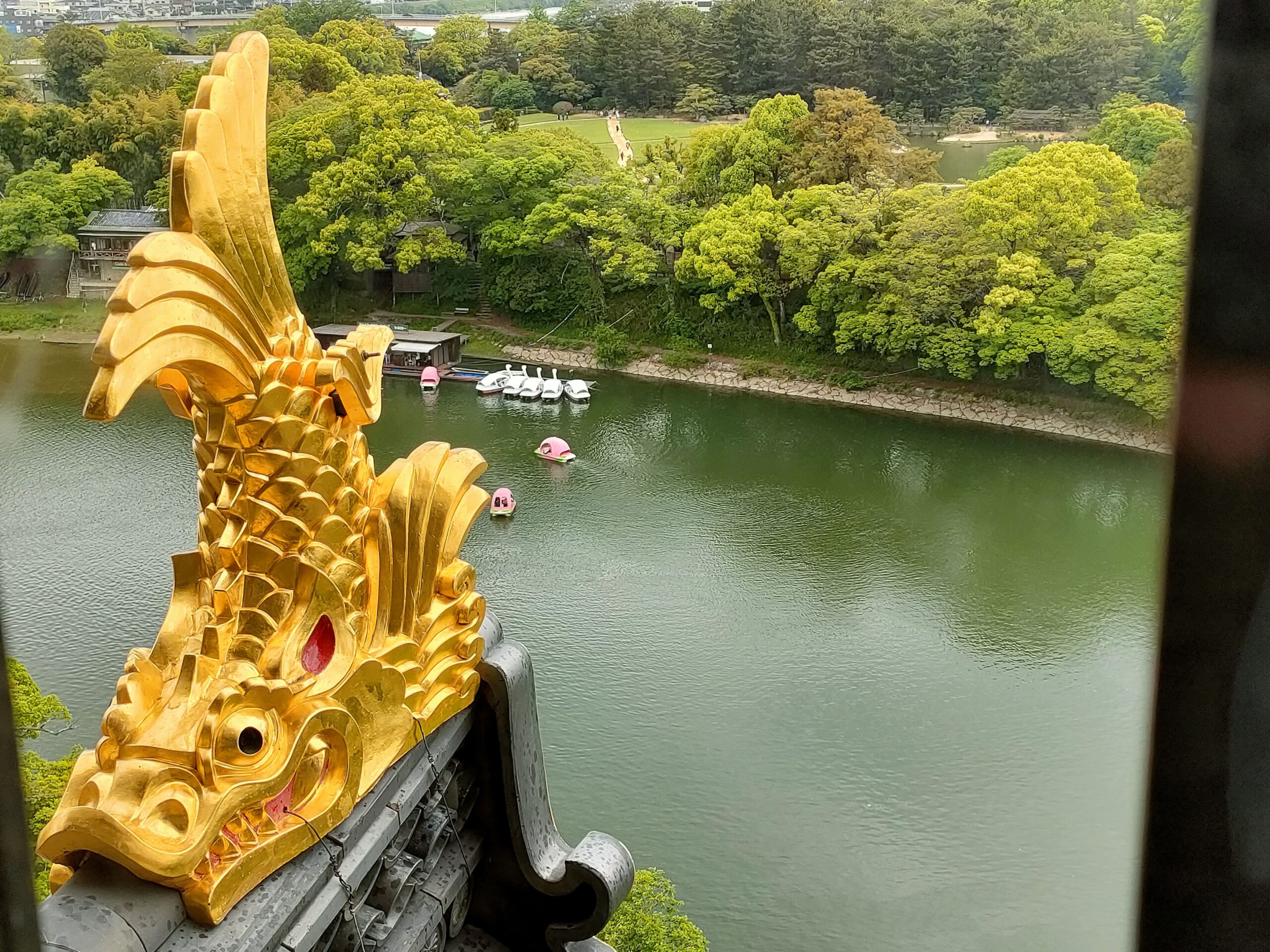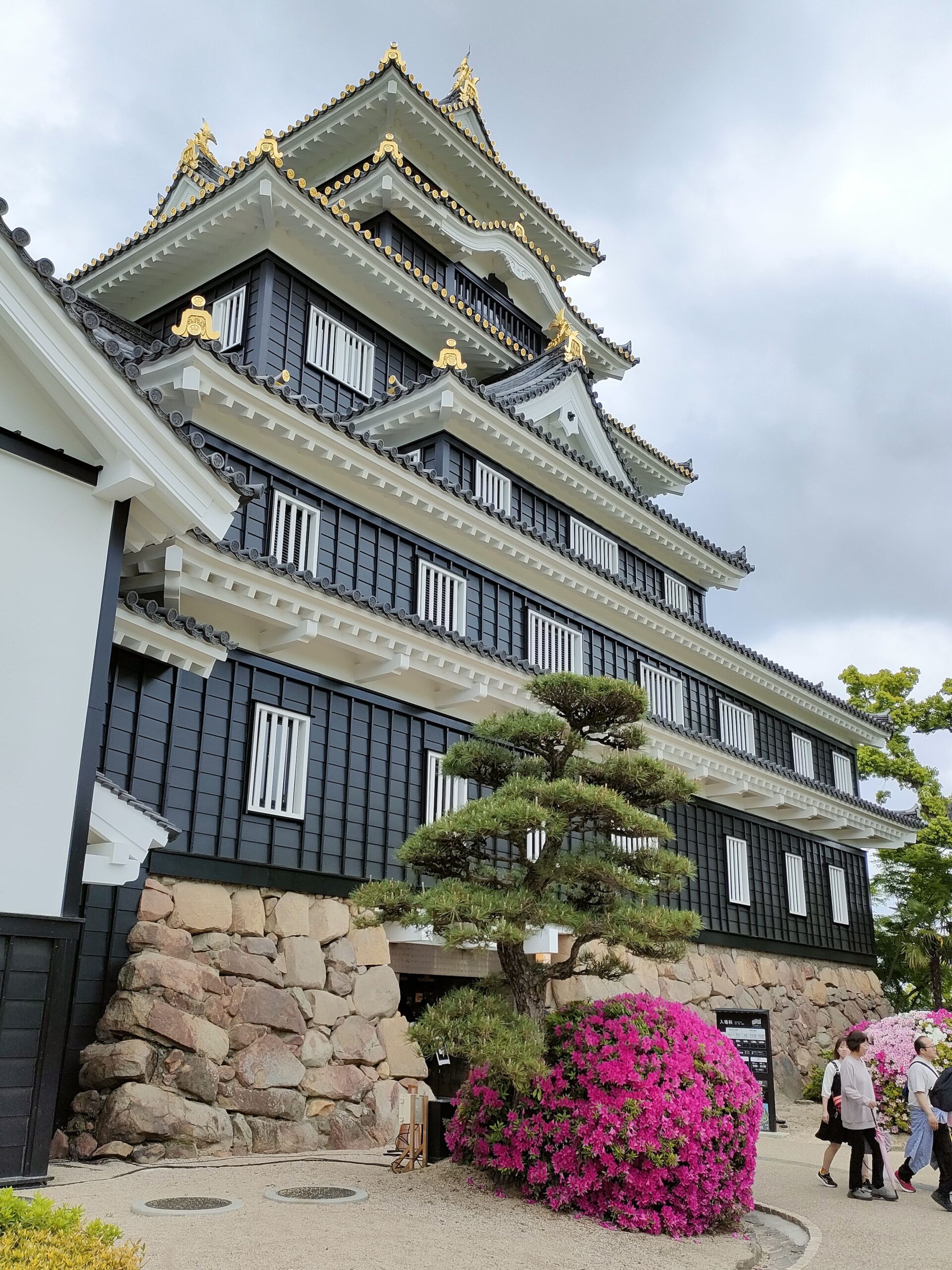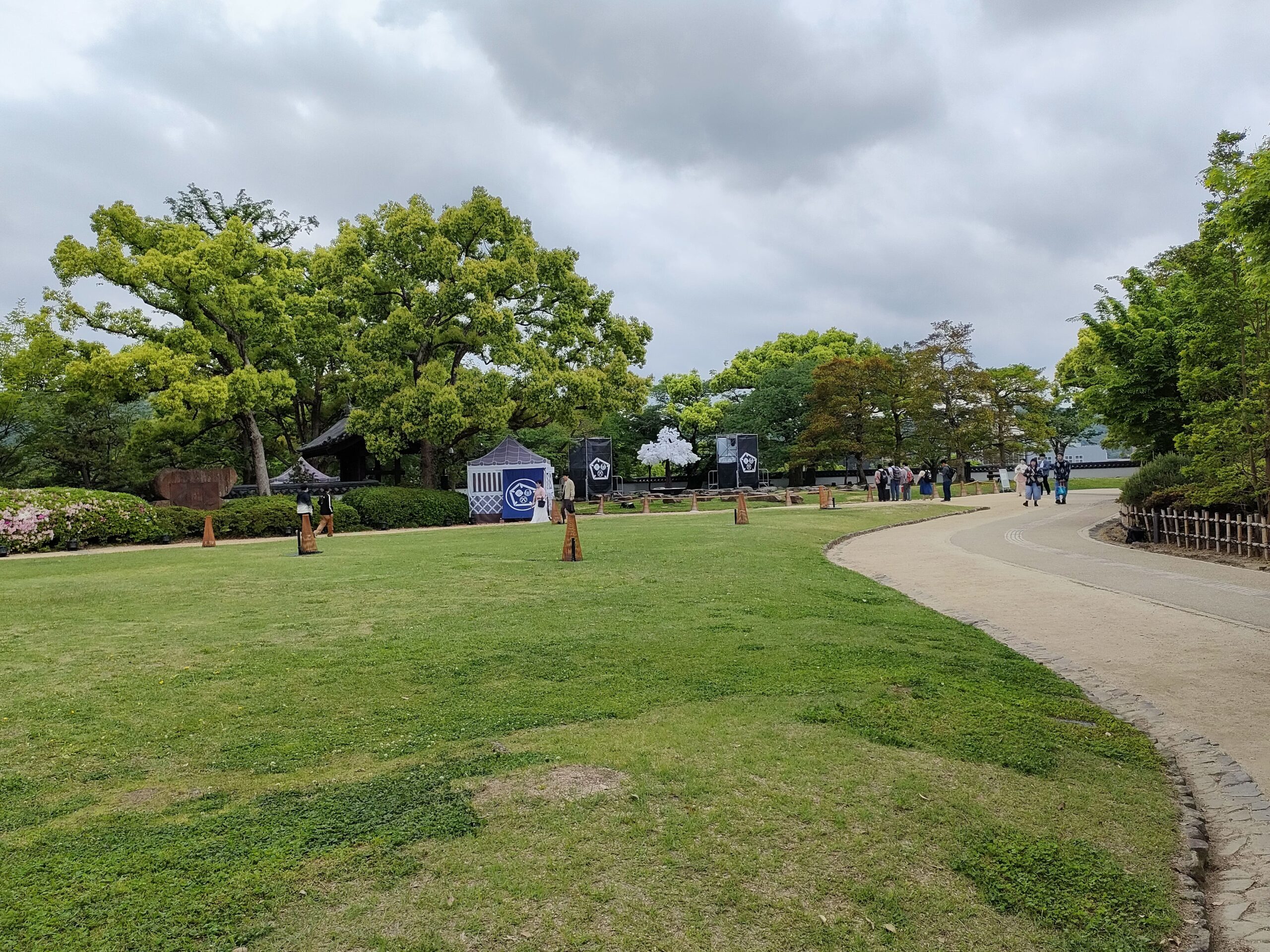 曇り空の下、岡山城を訪れました。岡山城では大丈夫だった雨も、お隣の後楽園を散策することには大雨に。傘をさしながらの散歩となってしまいました。岡山城は期待していた通りのかっこよさでした。黒を基調とした外観は、松本城などと同様に渋さというか重厚さというか、重みを感じます。