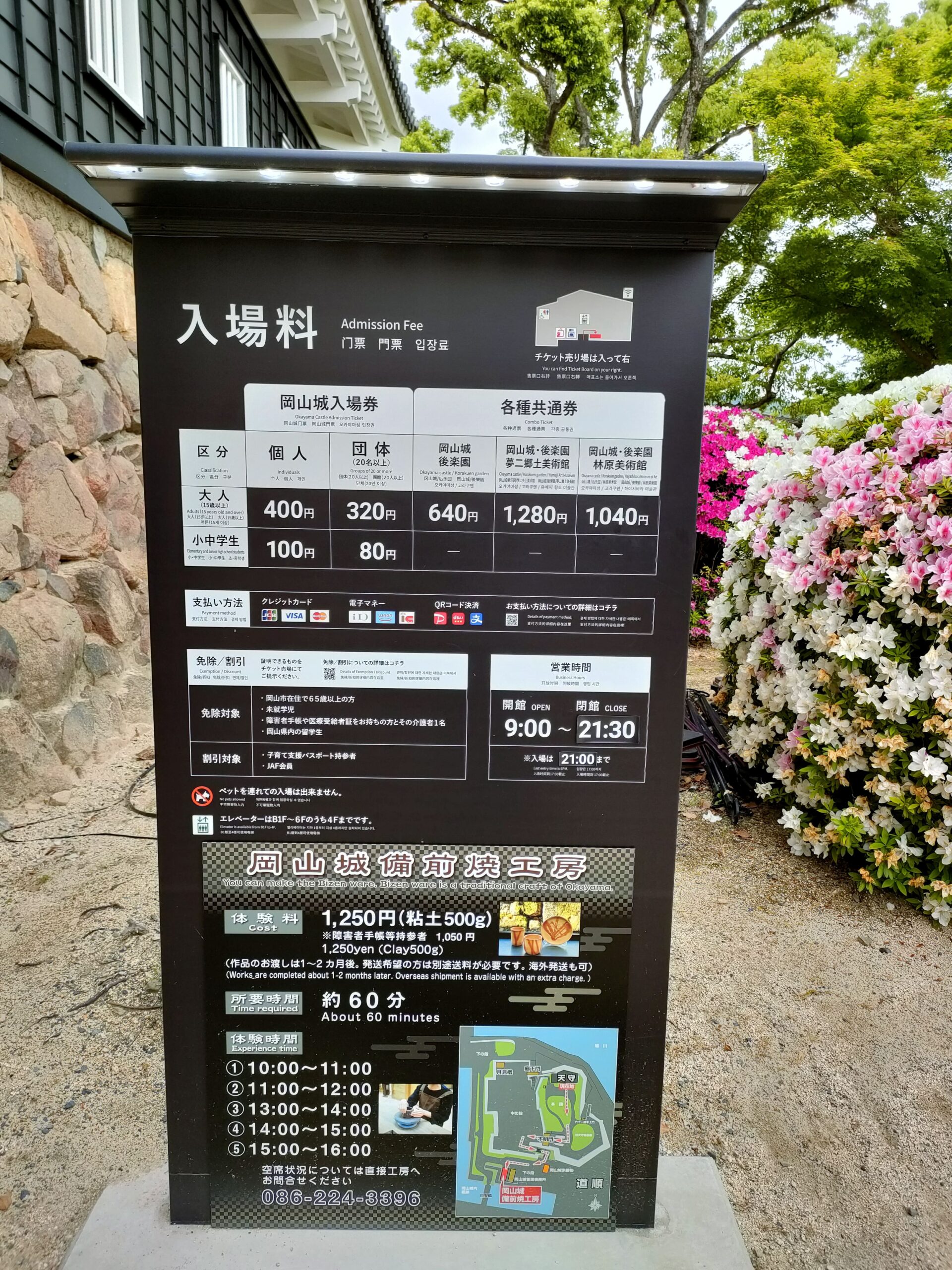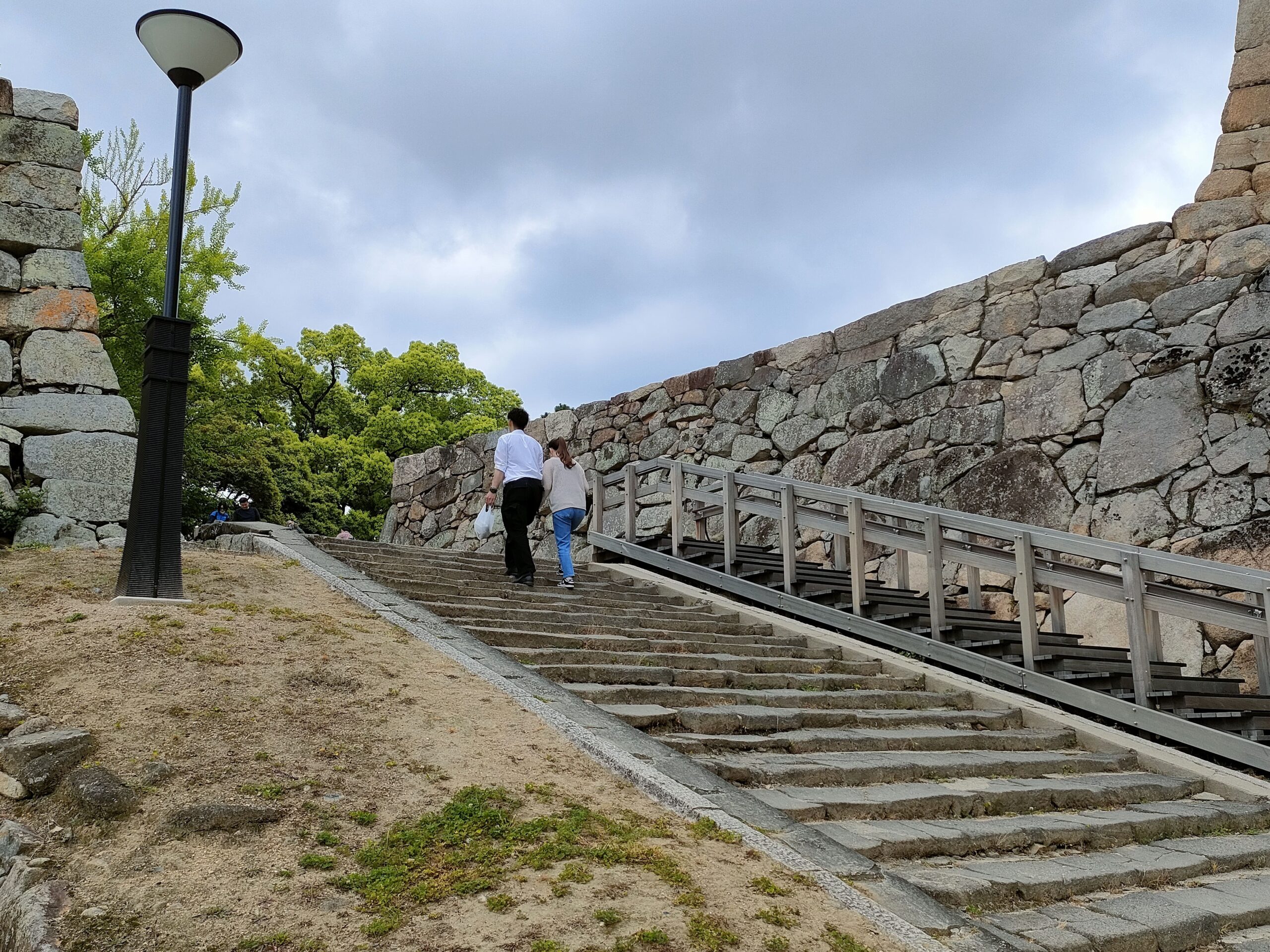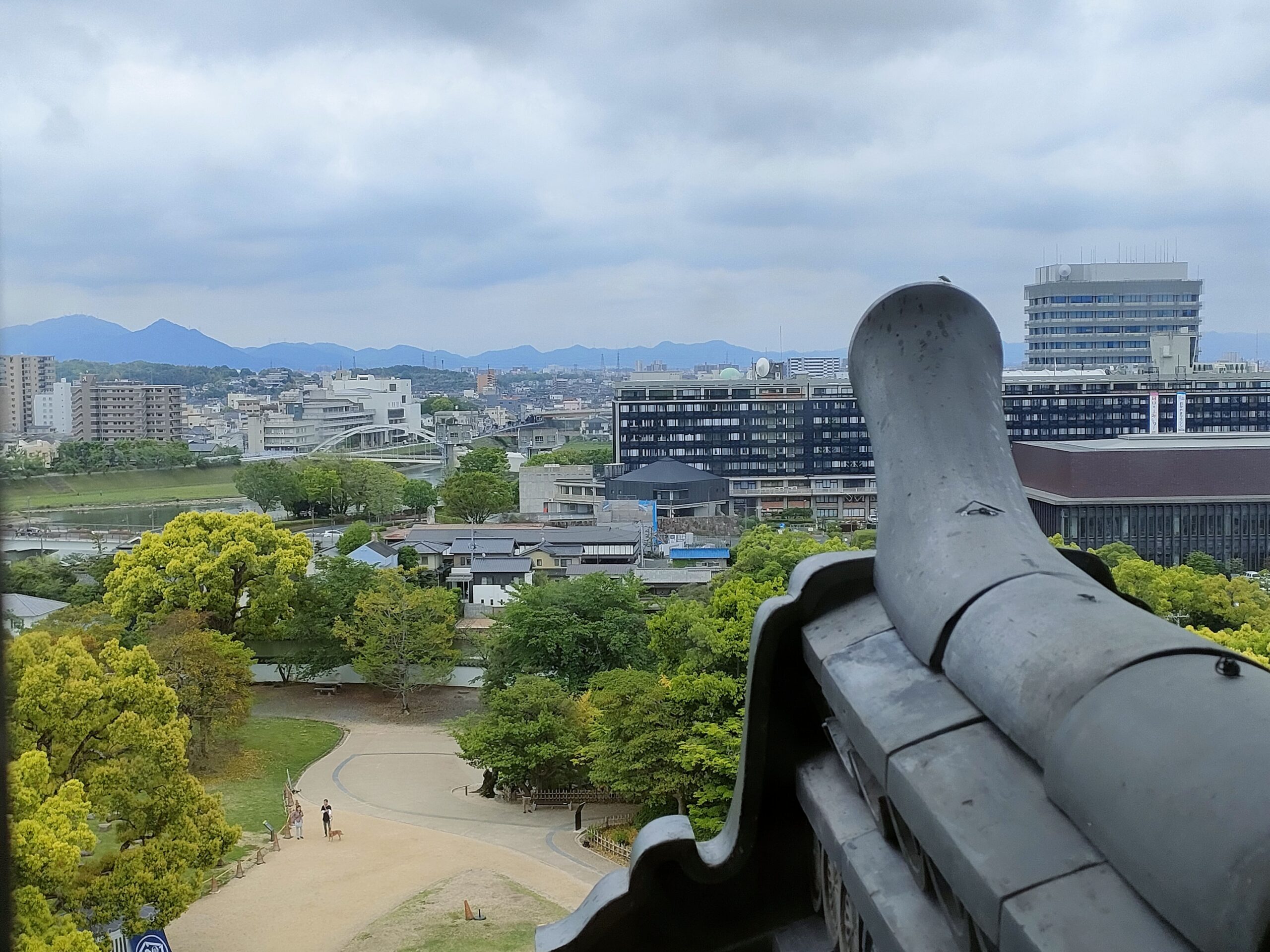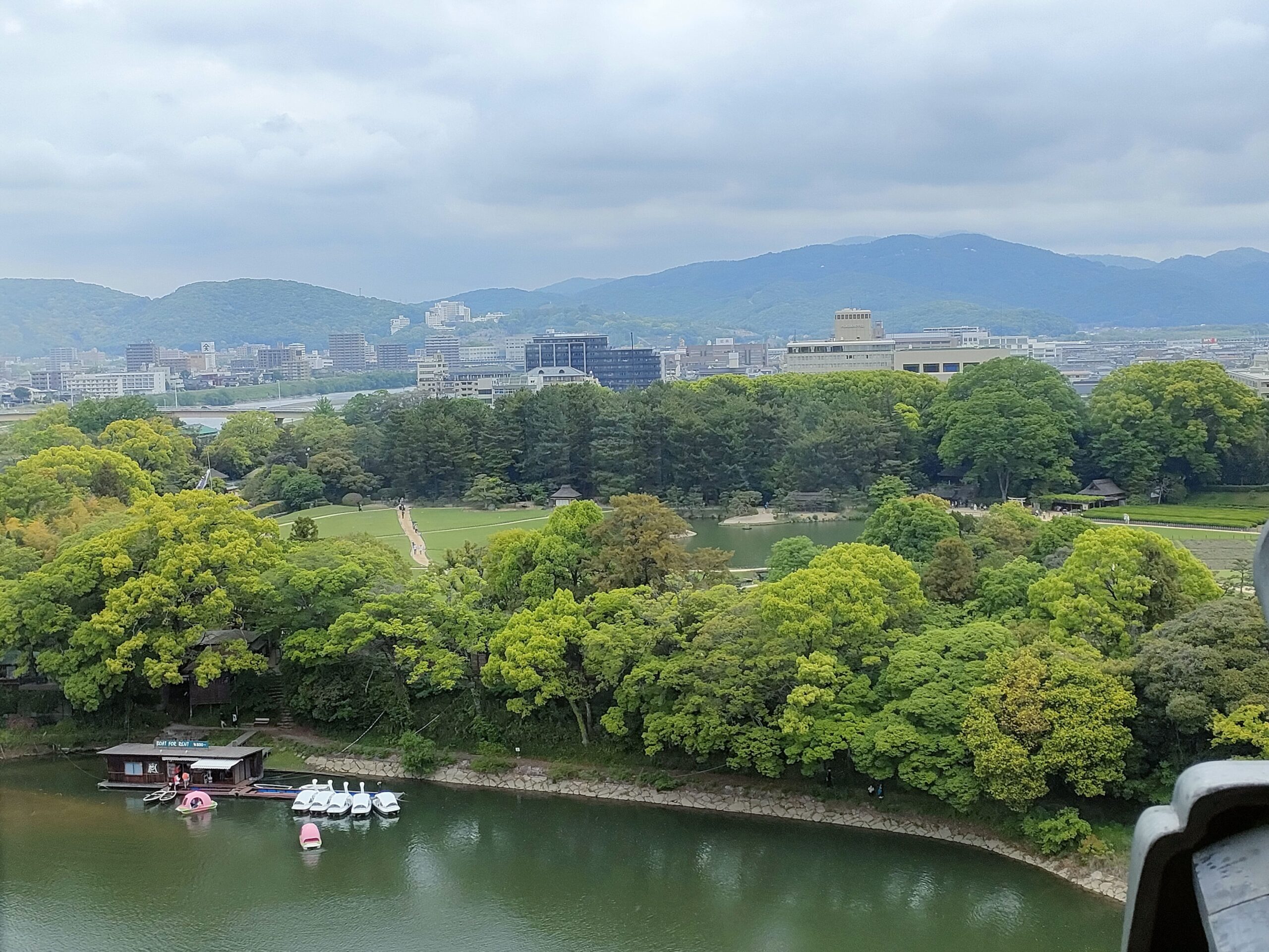 曇り空の下、岡山城を訪れました。岡山城では大丈夫だった雨も、お隣の後楽園を散策することには大雨に。傘をさしながらの散歩となってしまいました。岡山城は期待していた通りのかっこよさでした。黒を基調とした外観は、松本城などと同様に渋さというか重厚さというか、重みを感じます。