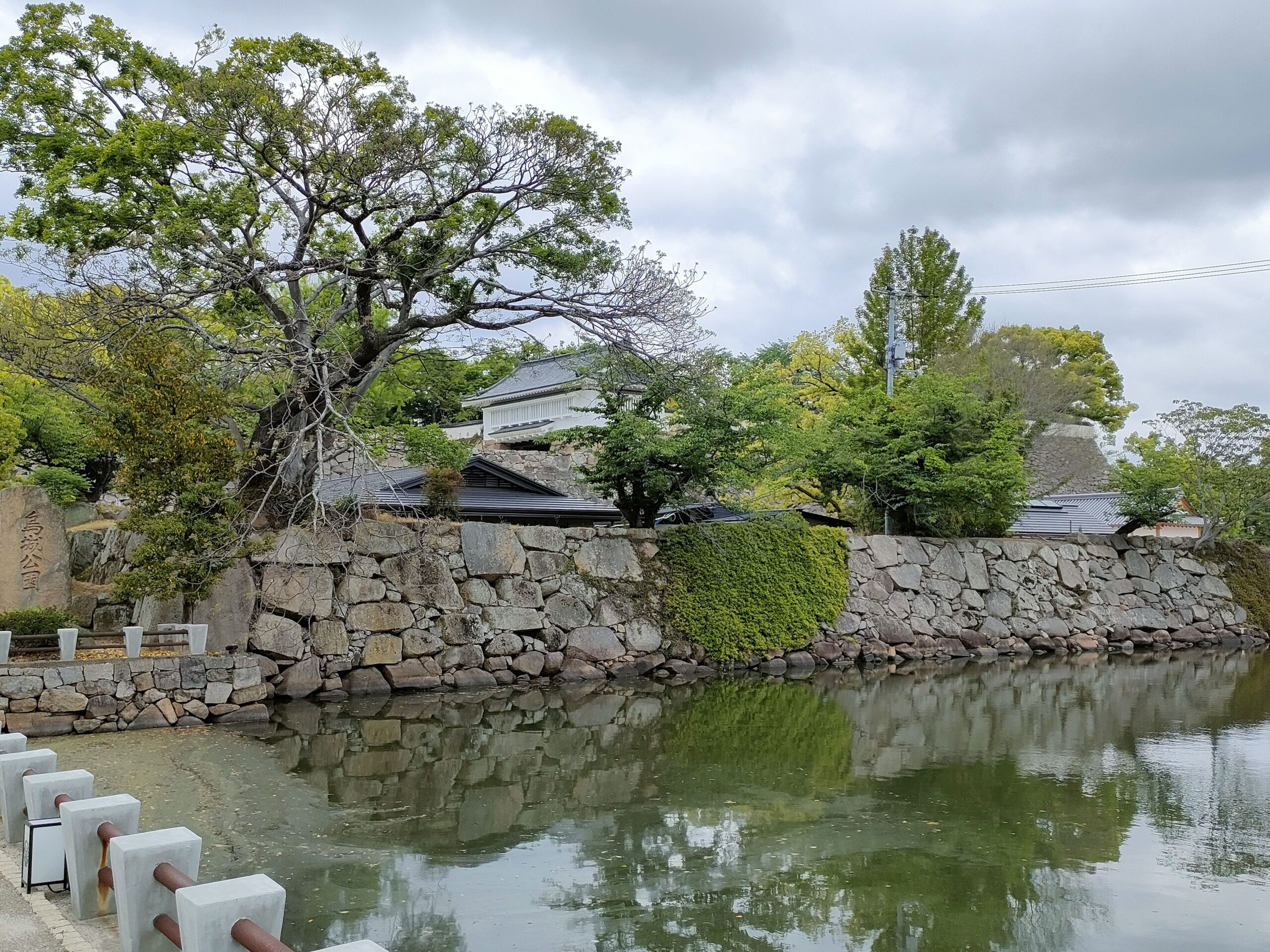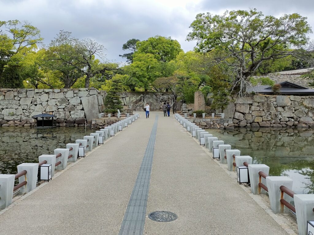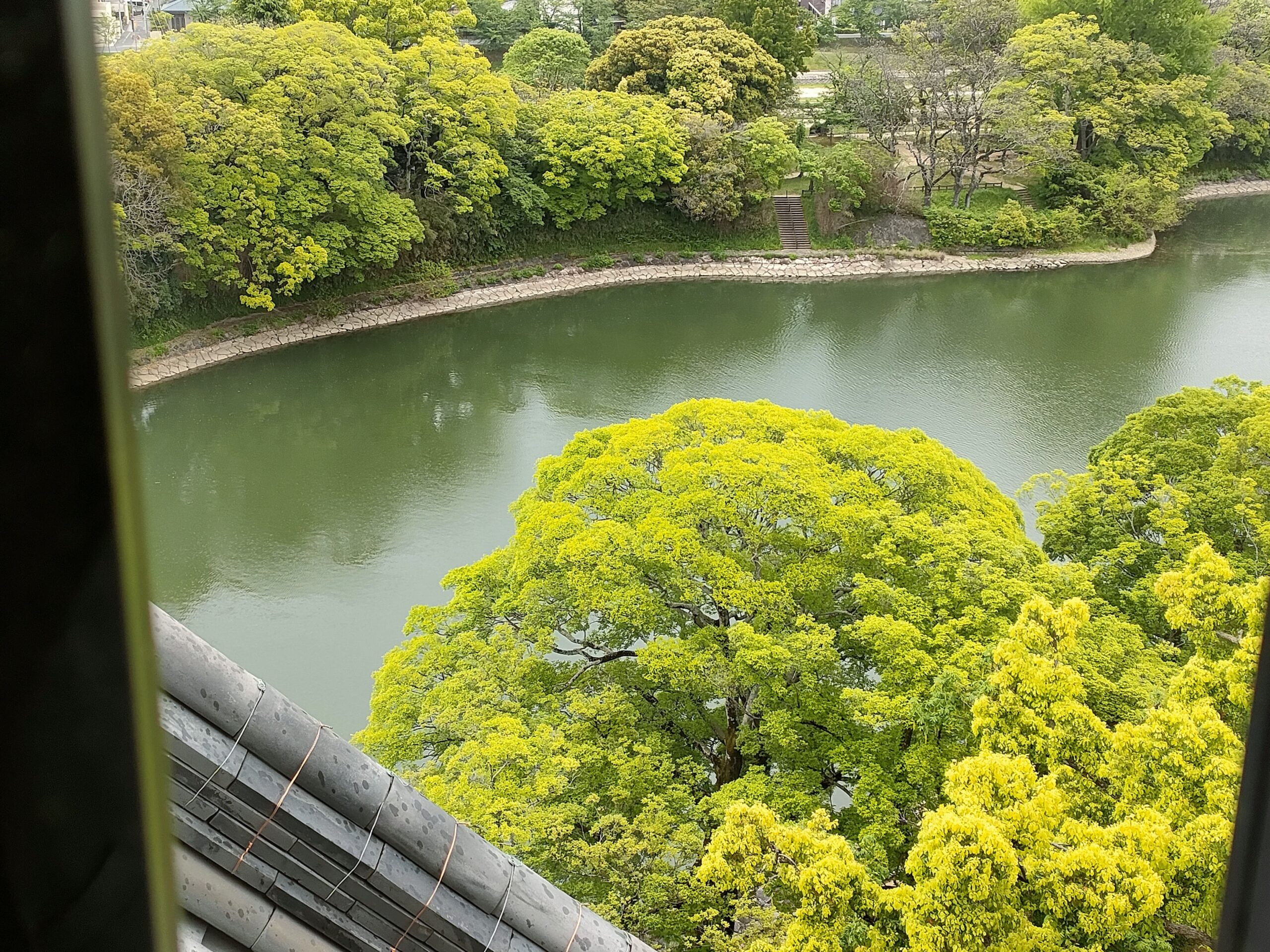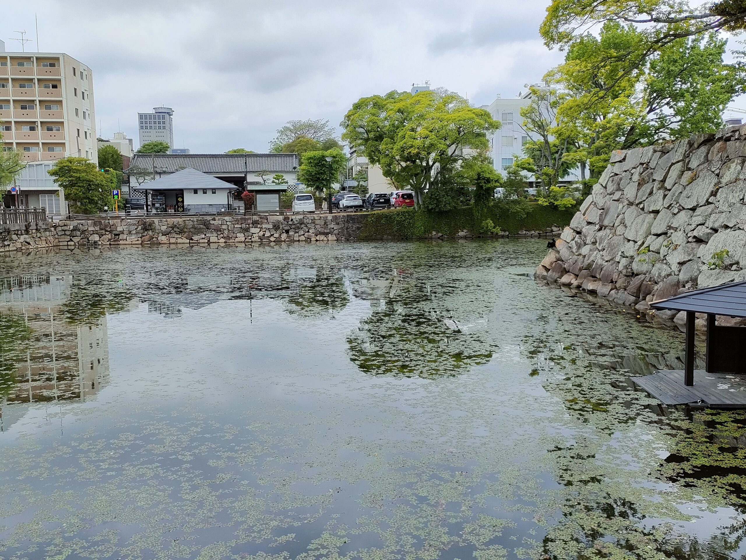 月見橋方面から西側を通り南面へと向かいました。そして目安橋に到達。内堀にかかる目安橋を渡りました。城内から一旦城外へそして城内へと橋を往復。お城の南側に位置し水面までの距離が短い橋です。水面に映る石垣や緑が味わい深くいい感じ。
