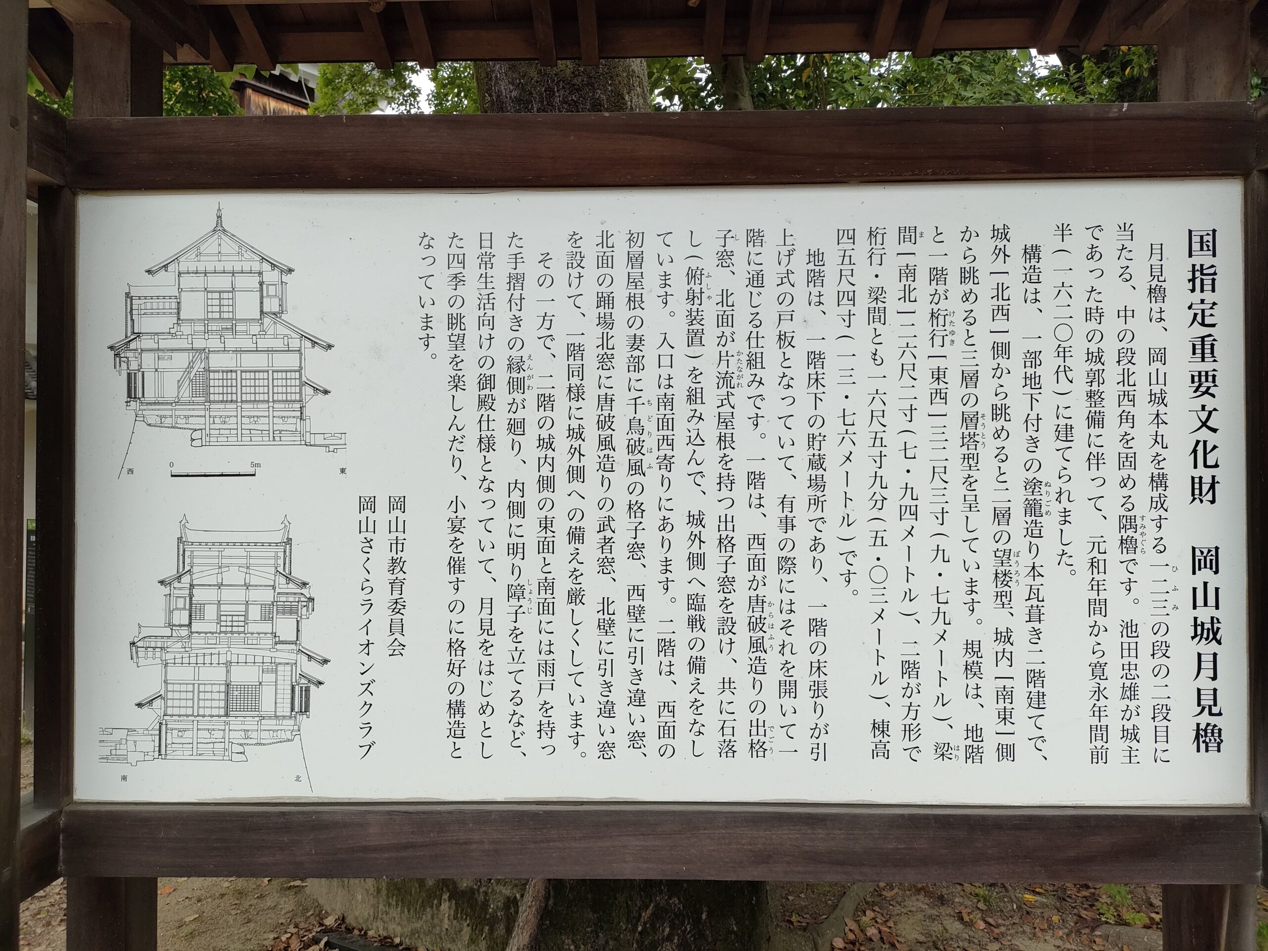 駐車場に車を停めて、岡山城へ向かいます。旭川沿いに堤防を歩き、岡山城が見えてきました。下の段を月見櫓、大納戸櫓を下から見上げながら、鉄門跡へと歩を勧めました。