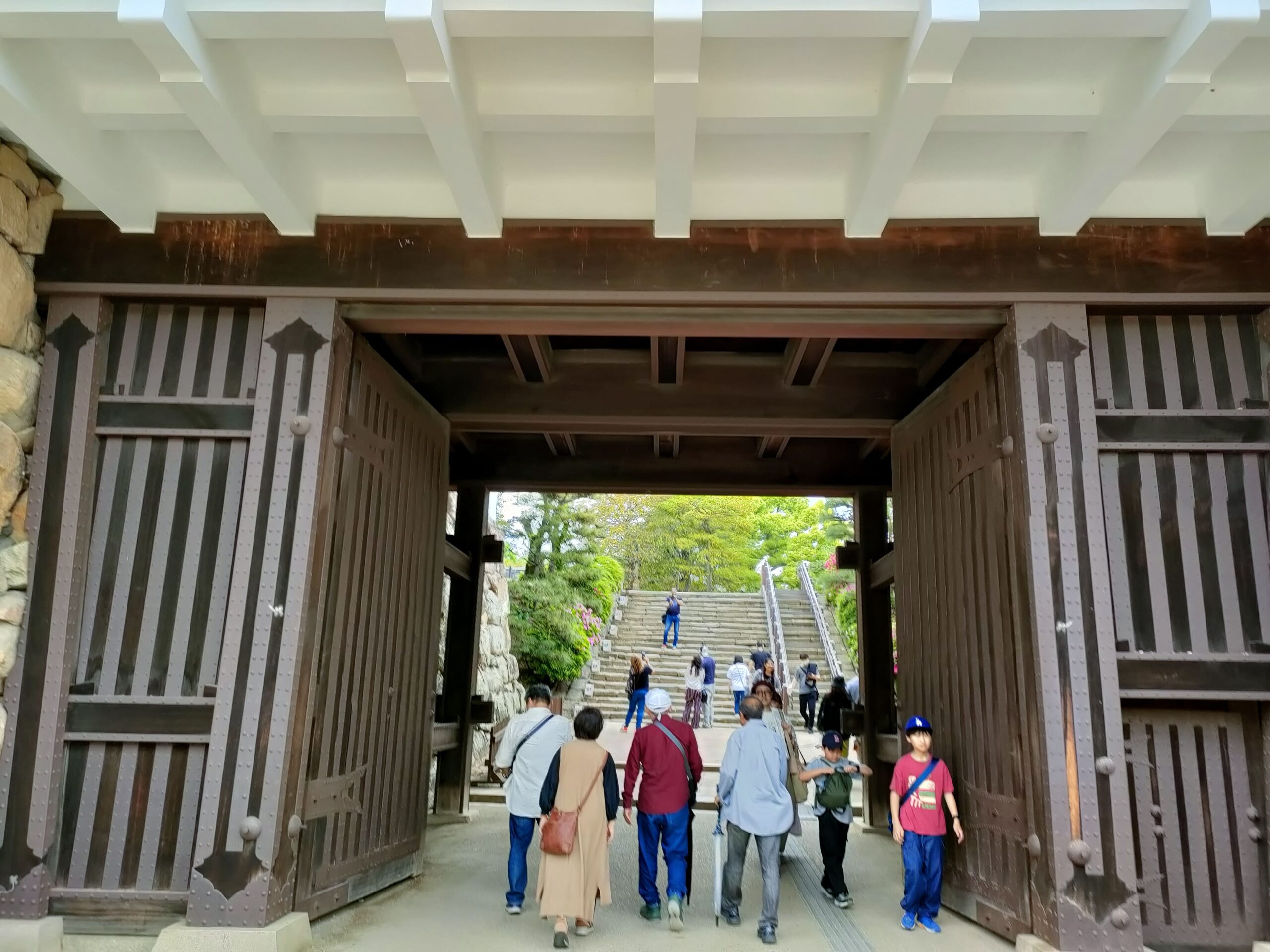 天守内部に滞在した時間は、今までで最長だったと思います。天守内で飲食をして、衣装体験をして、長時間の滞在となりました。とても満喫させていただきました。天守をあとにして、廊下門から場外へと。
