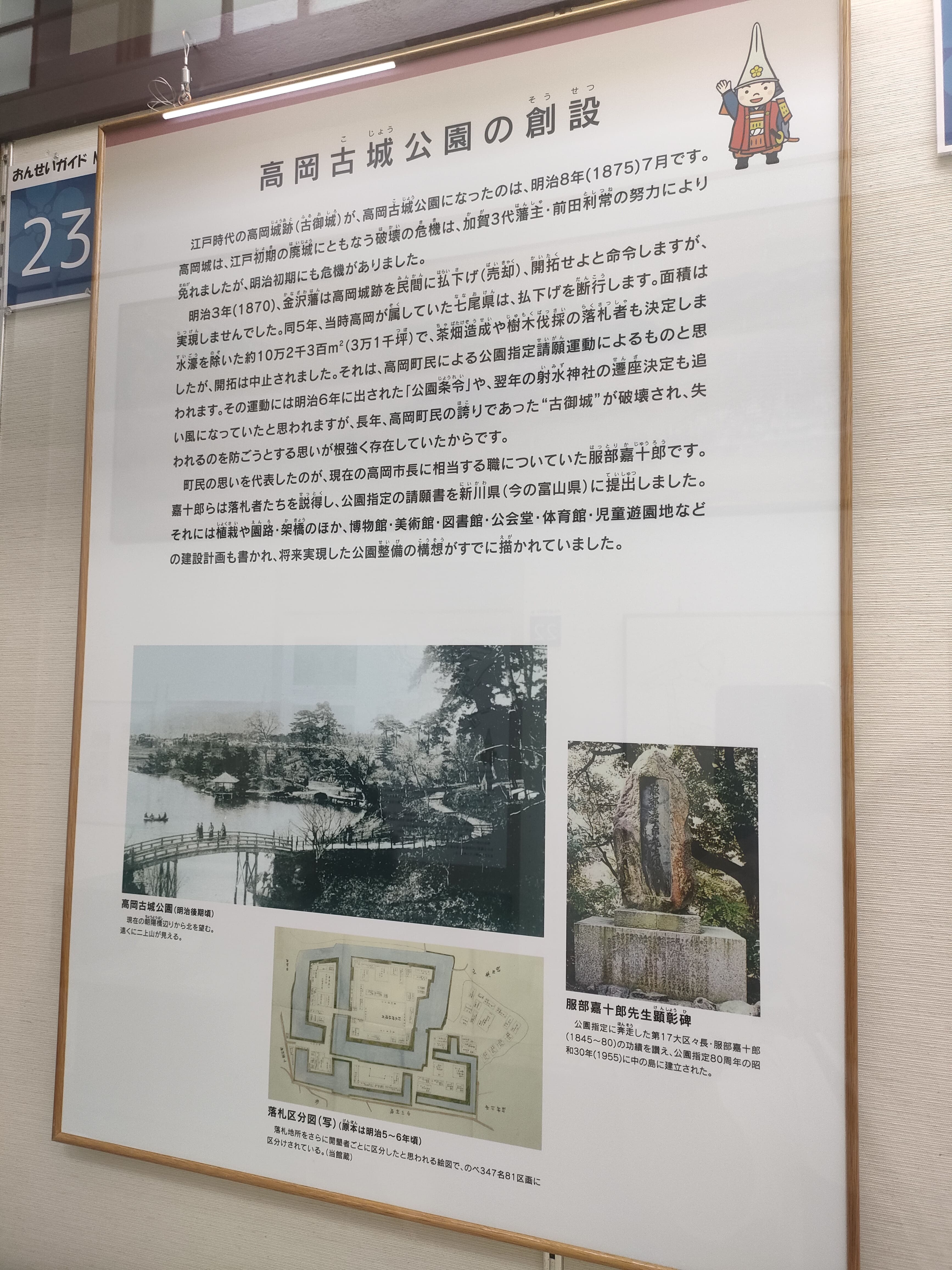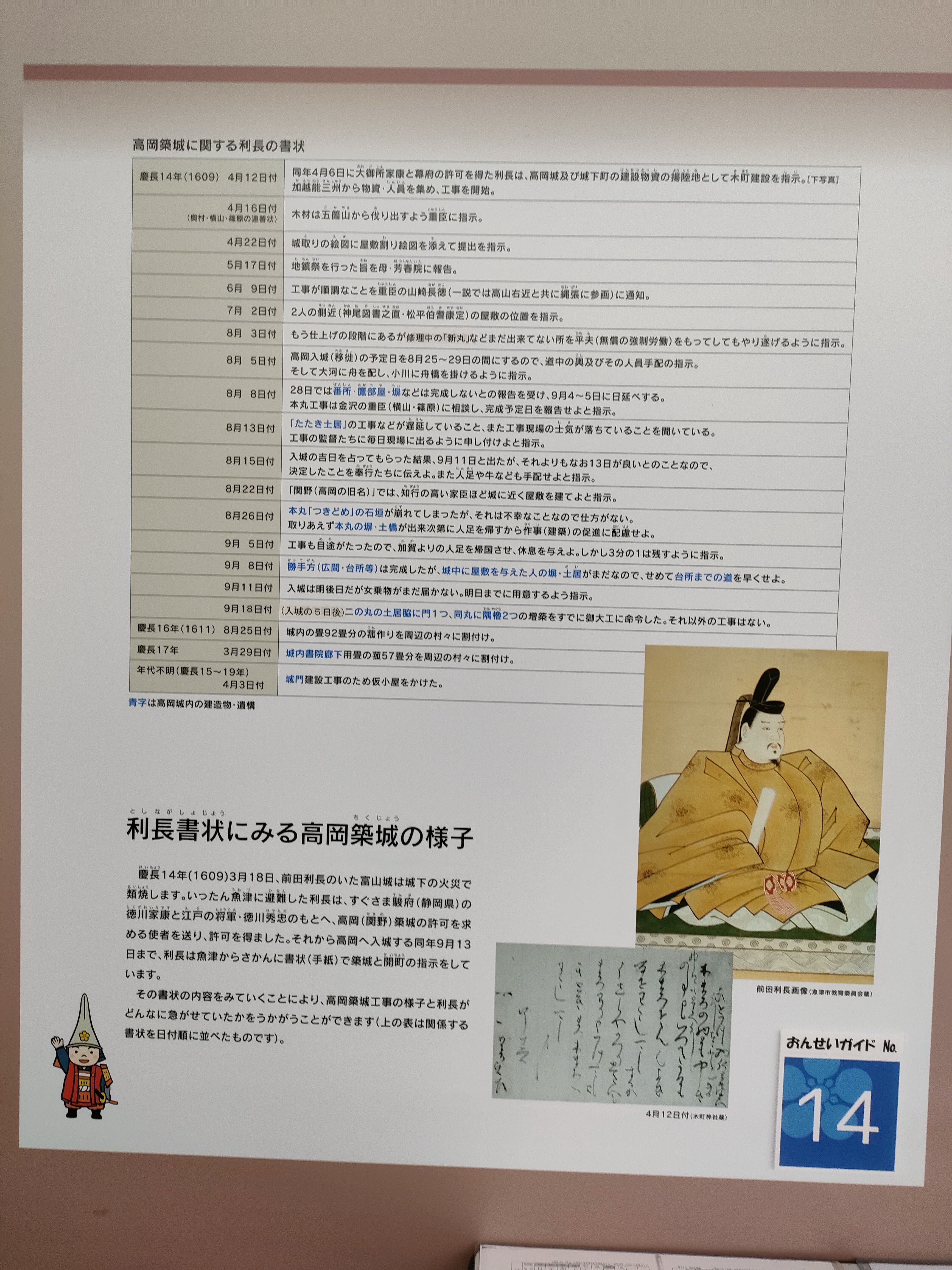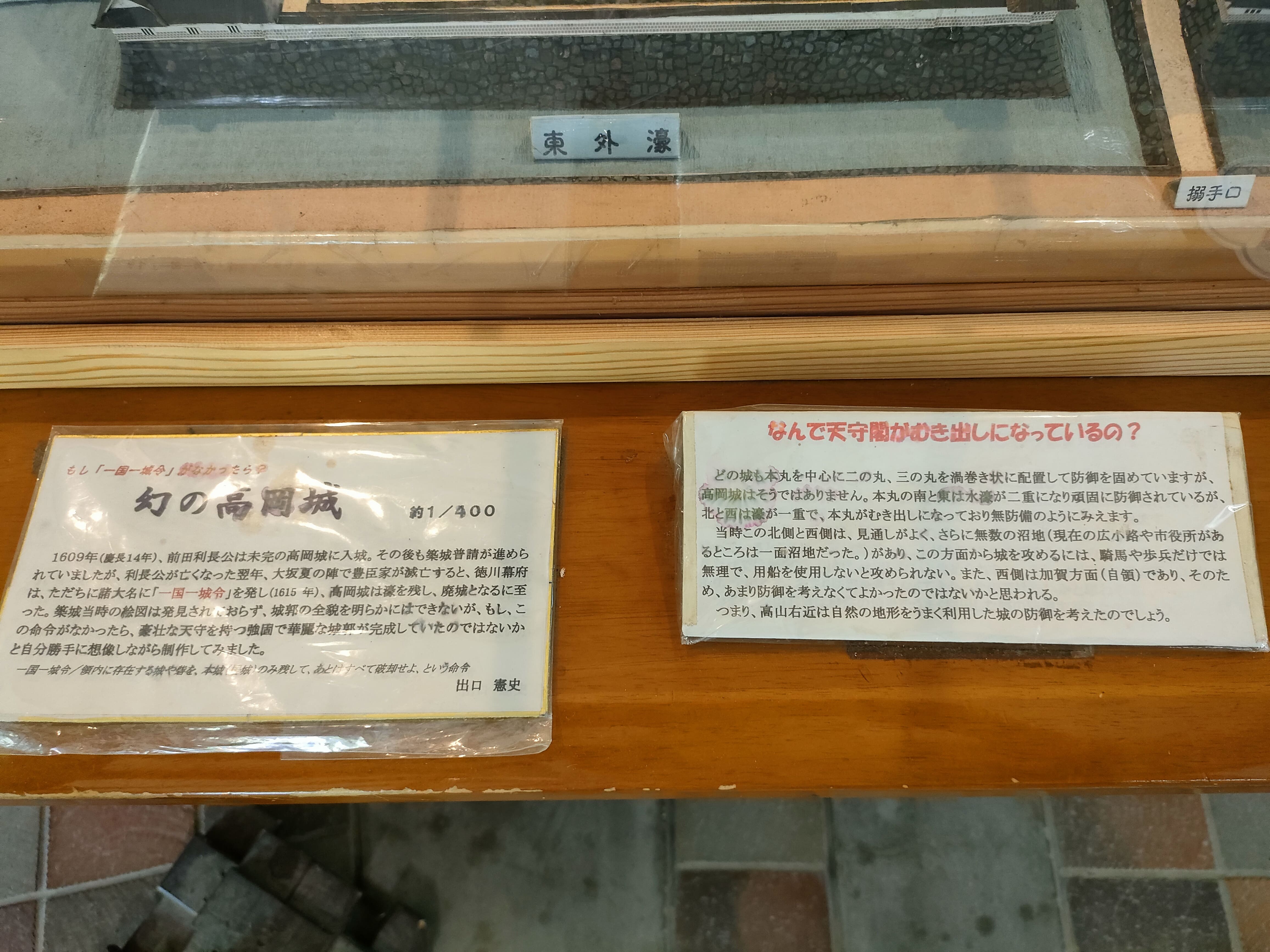 城内散歩の前に、まずは高岡城の歴史についてお勉強です。読ませるパネルが多く、「字」が好きな人には超おススメの博物館です。
