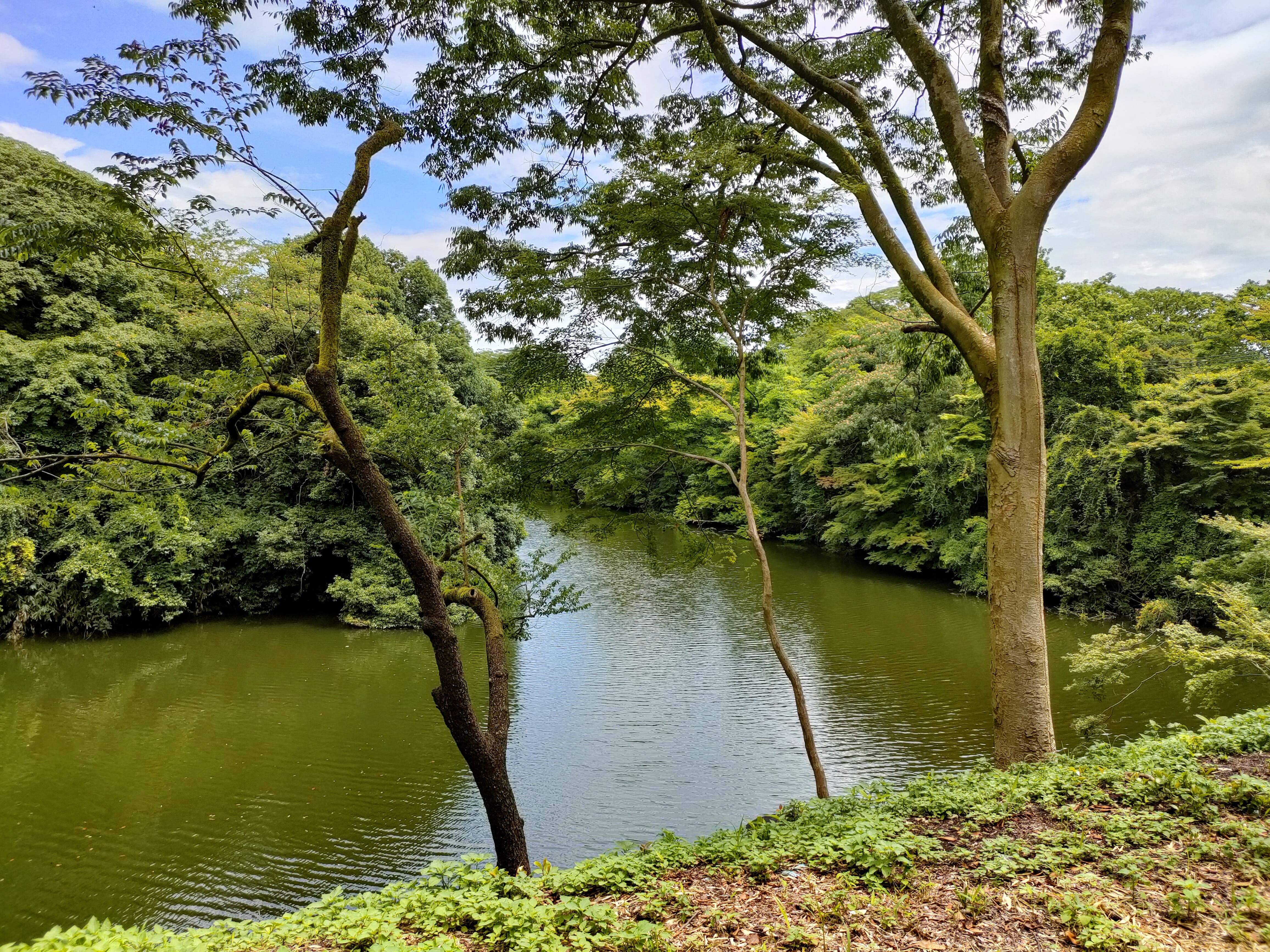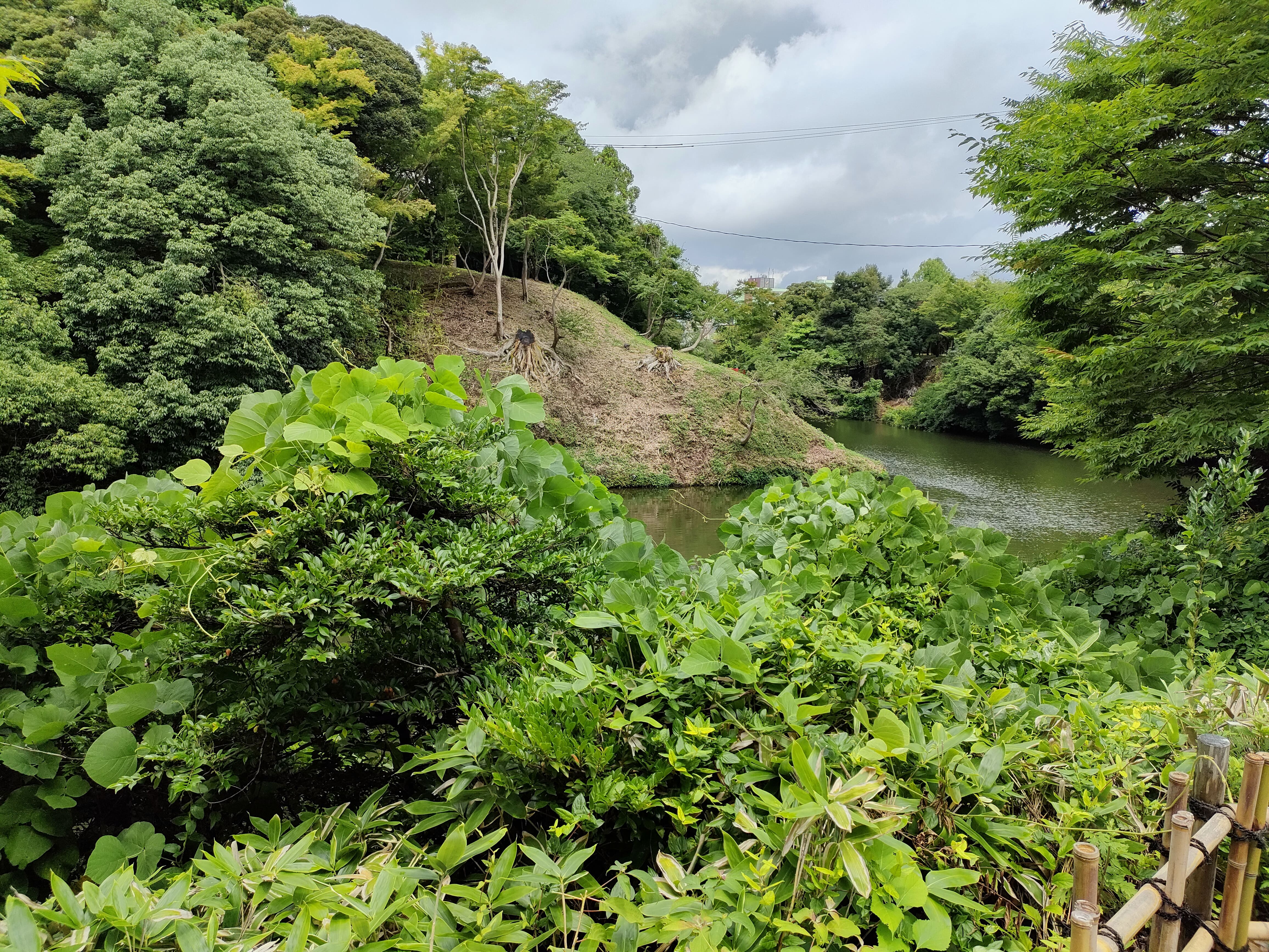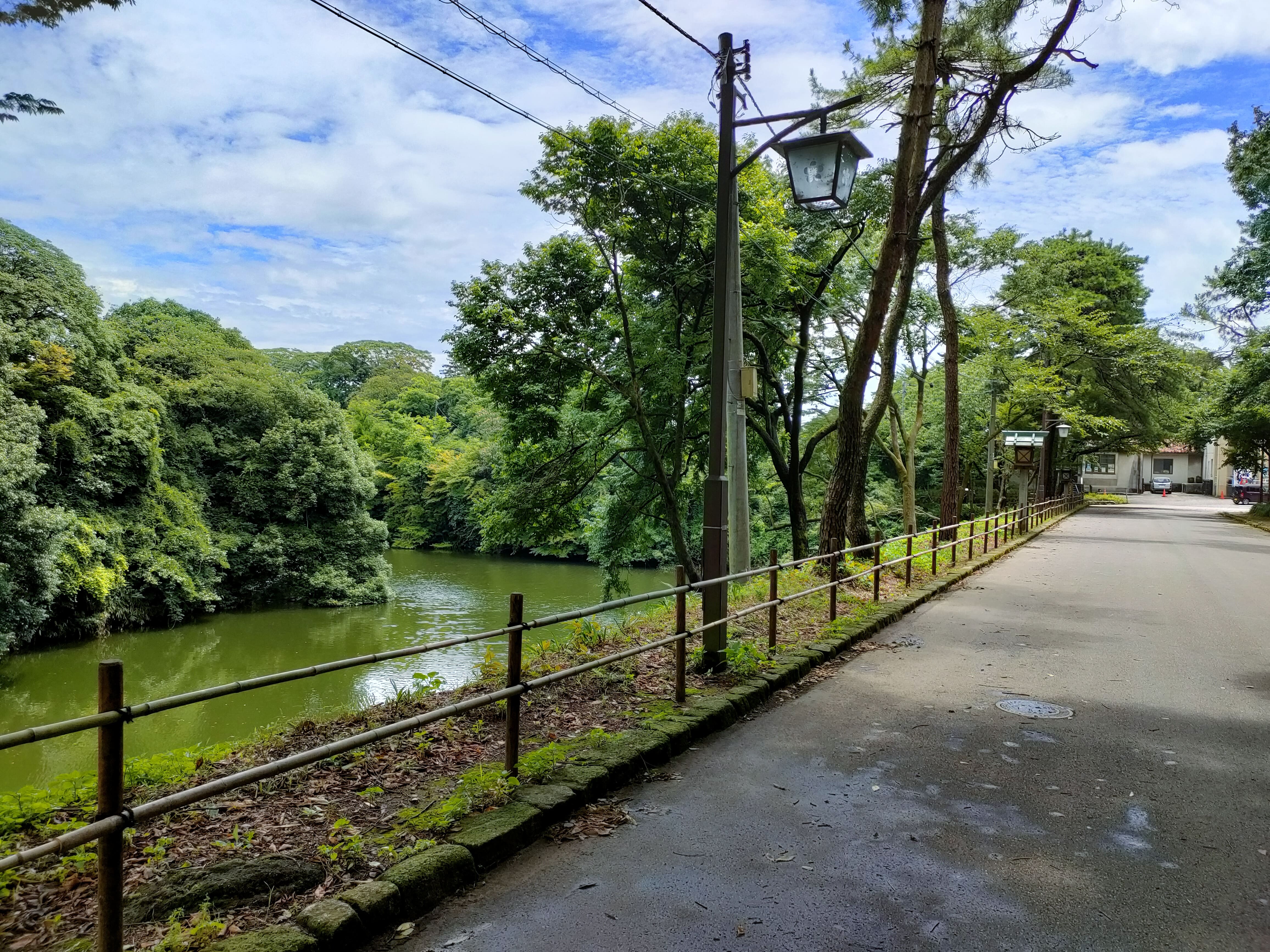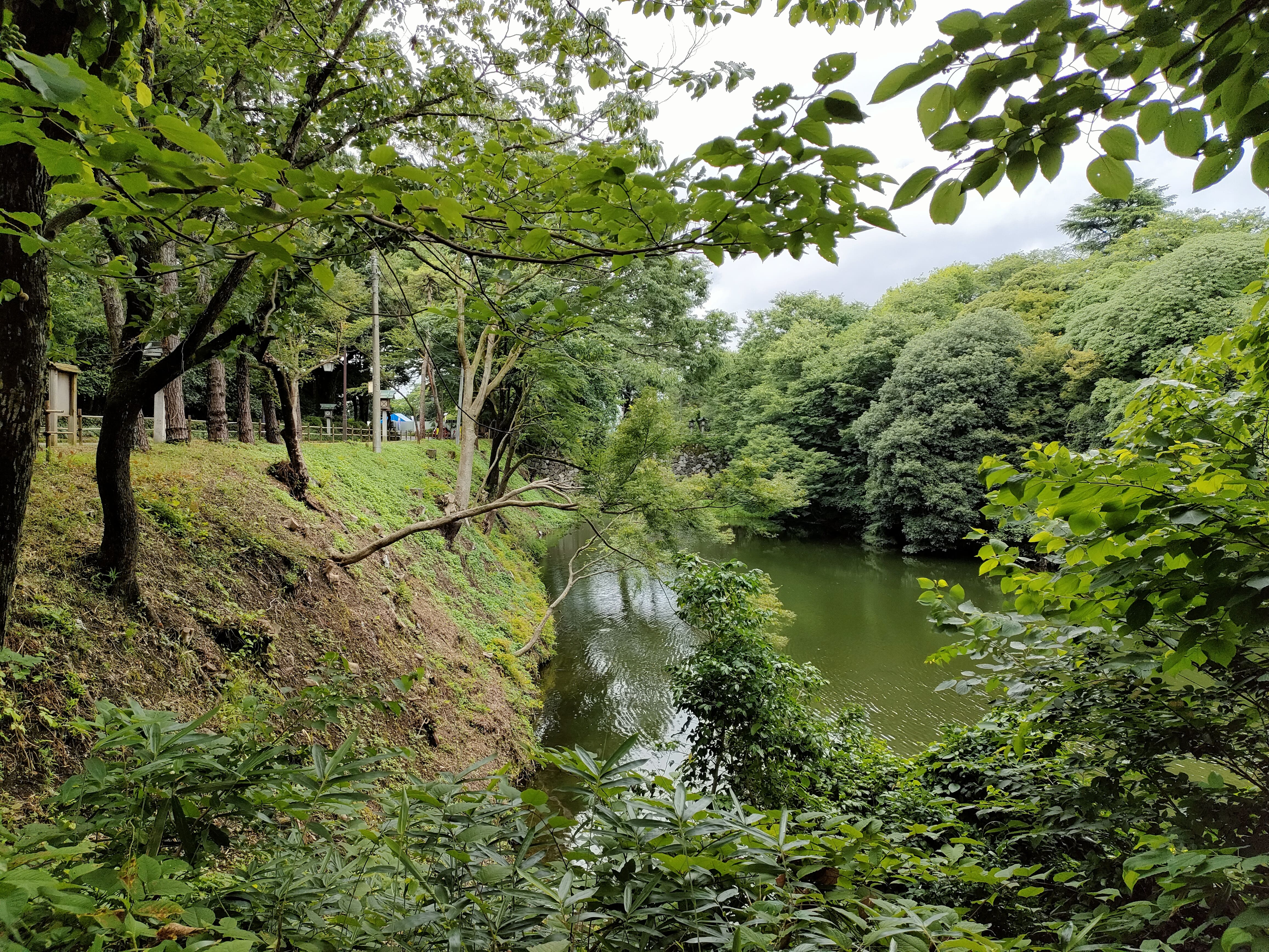 市立博物館を出て、公園内の散策開始です。まずは内堀沿いを歩いて三の丸茶屋を目指しました。木々が覆い茂り内堀の全容が見づらかったですね。