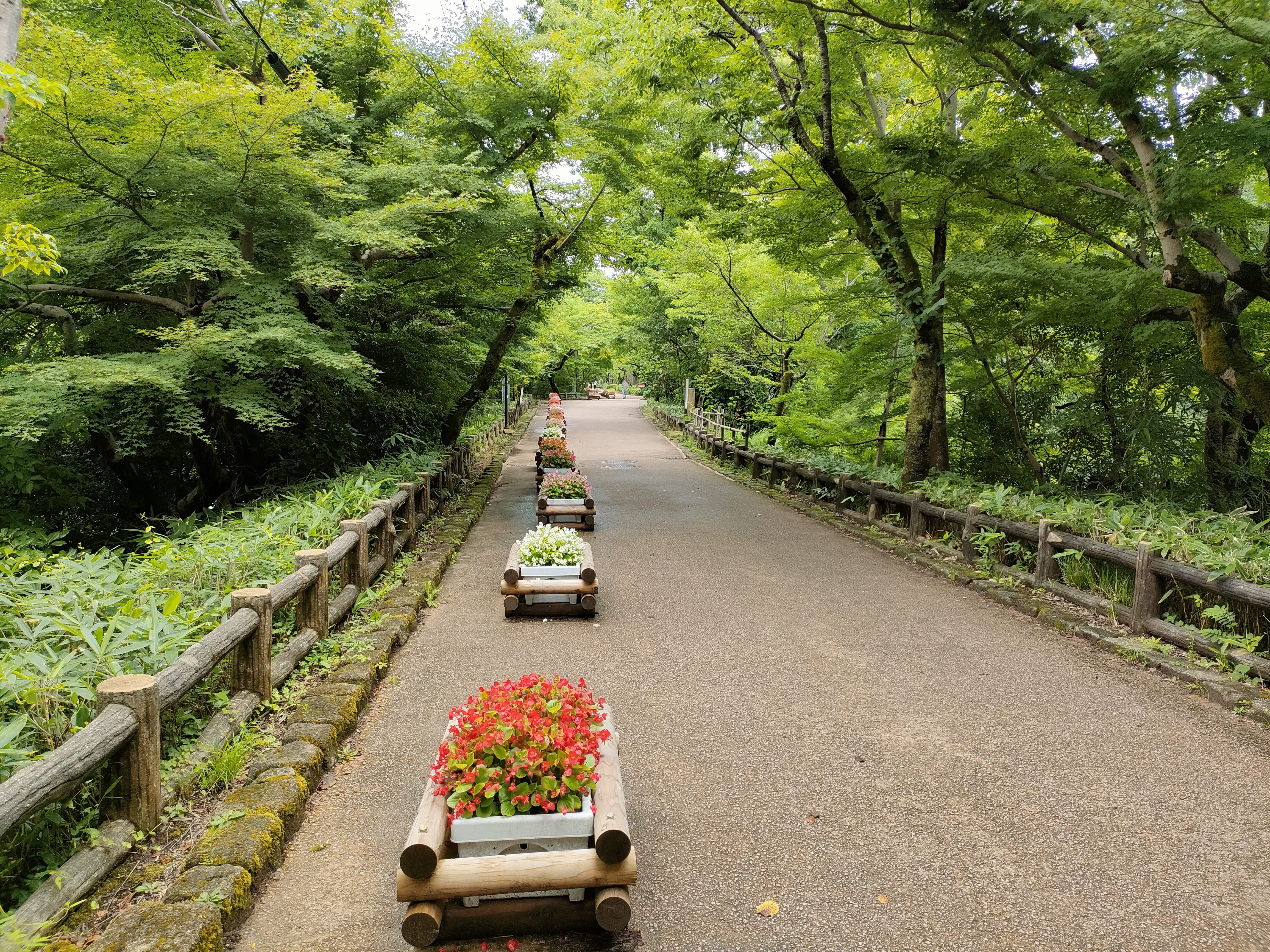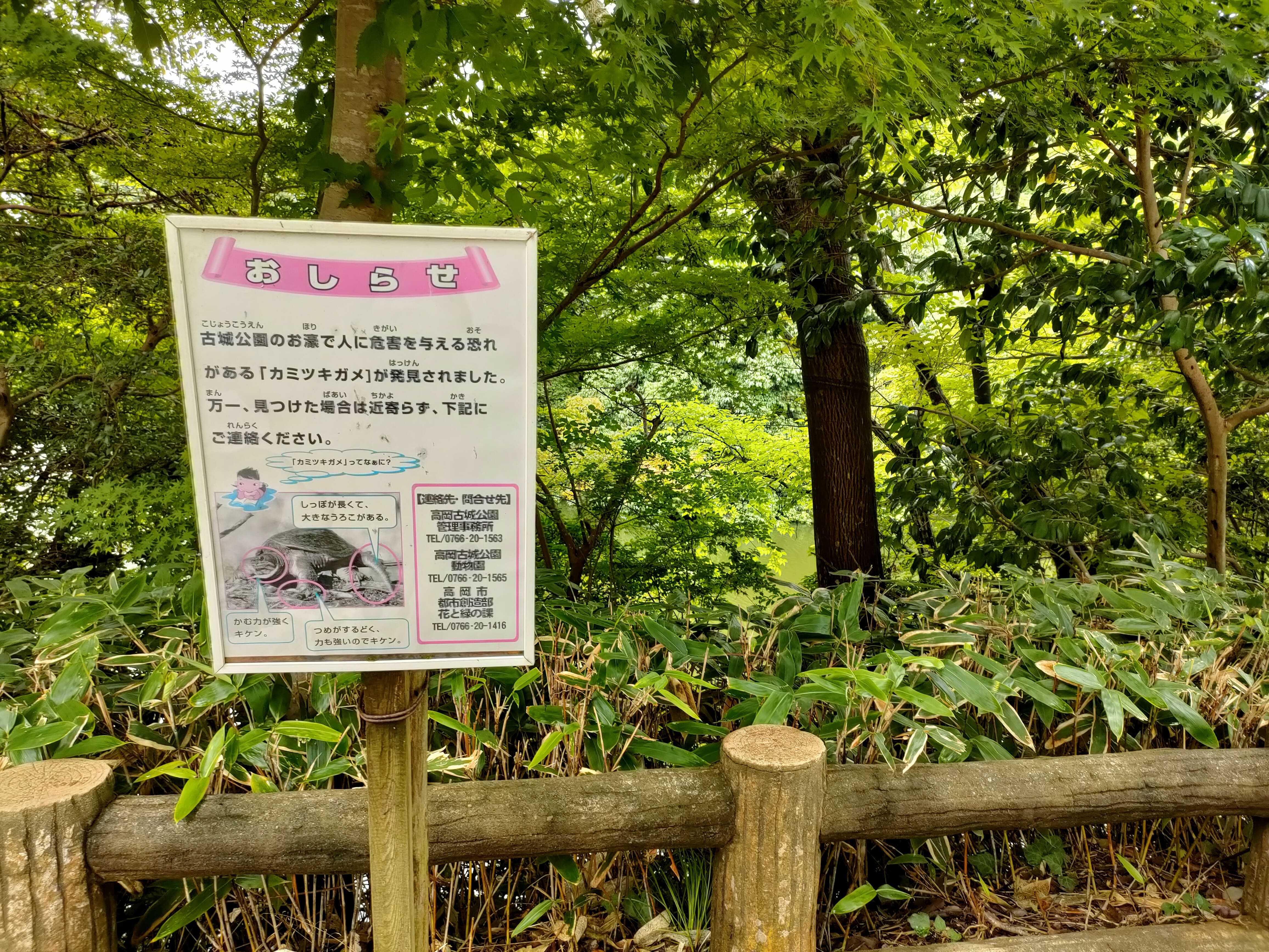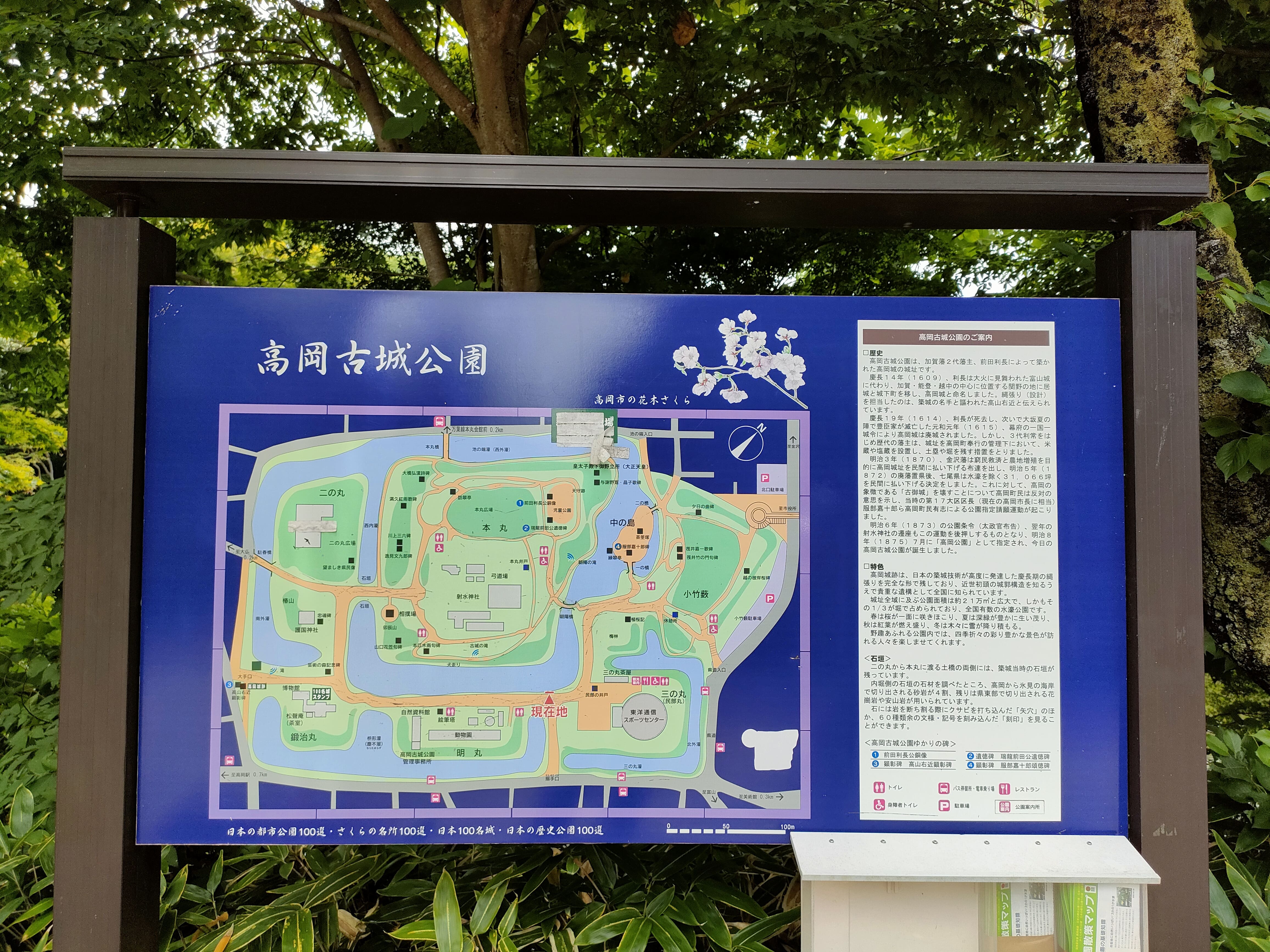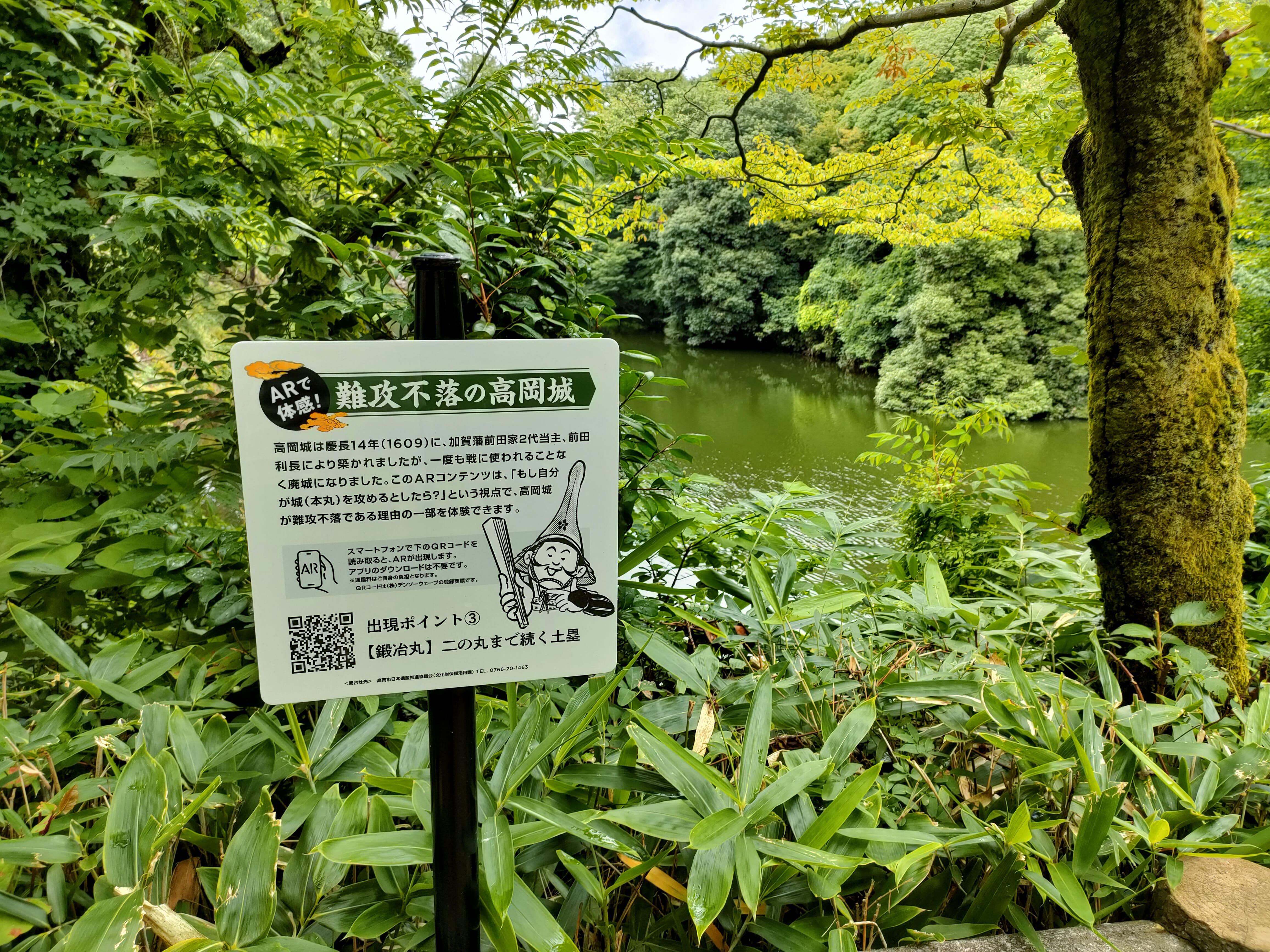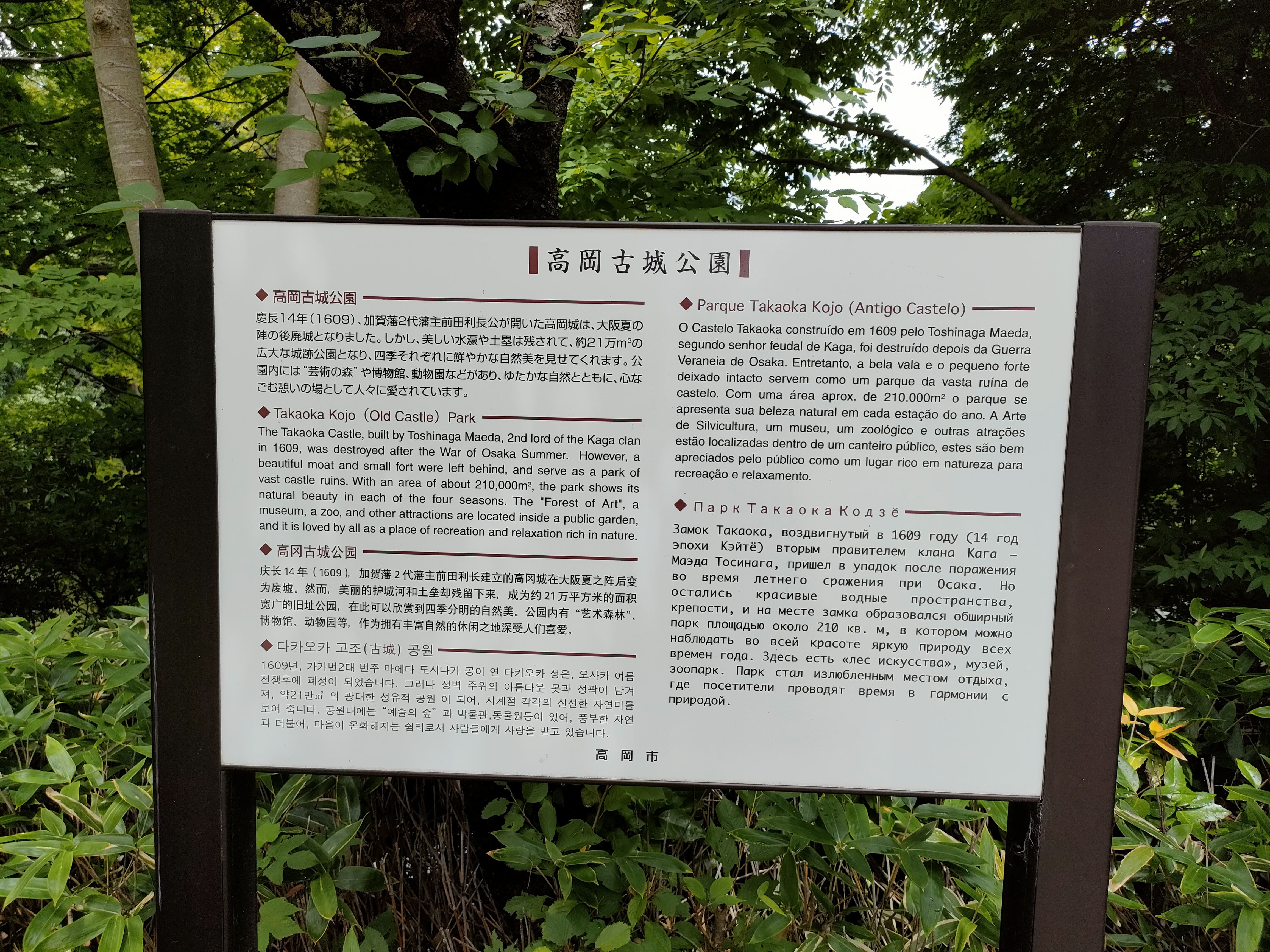 まずは、公園内にある高岡市立博物館を目指しました。駐車場に車を停め博物館内でお勉強。そして公園内を散歩しました。天守はありませんが、堀の立派さには目を見張るものがありました。緑に覆われて堀が隅々まで見られるスポットがなかなありませんでしたが、迫力満点でした。公園中央に歩を進めると、芝生が一面に敷き詰められた場所が出現。そこには、たくさんの人が休日を楽しんでいました。憩いの場所なんですね。