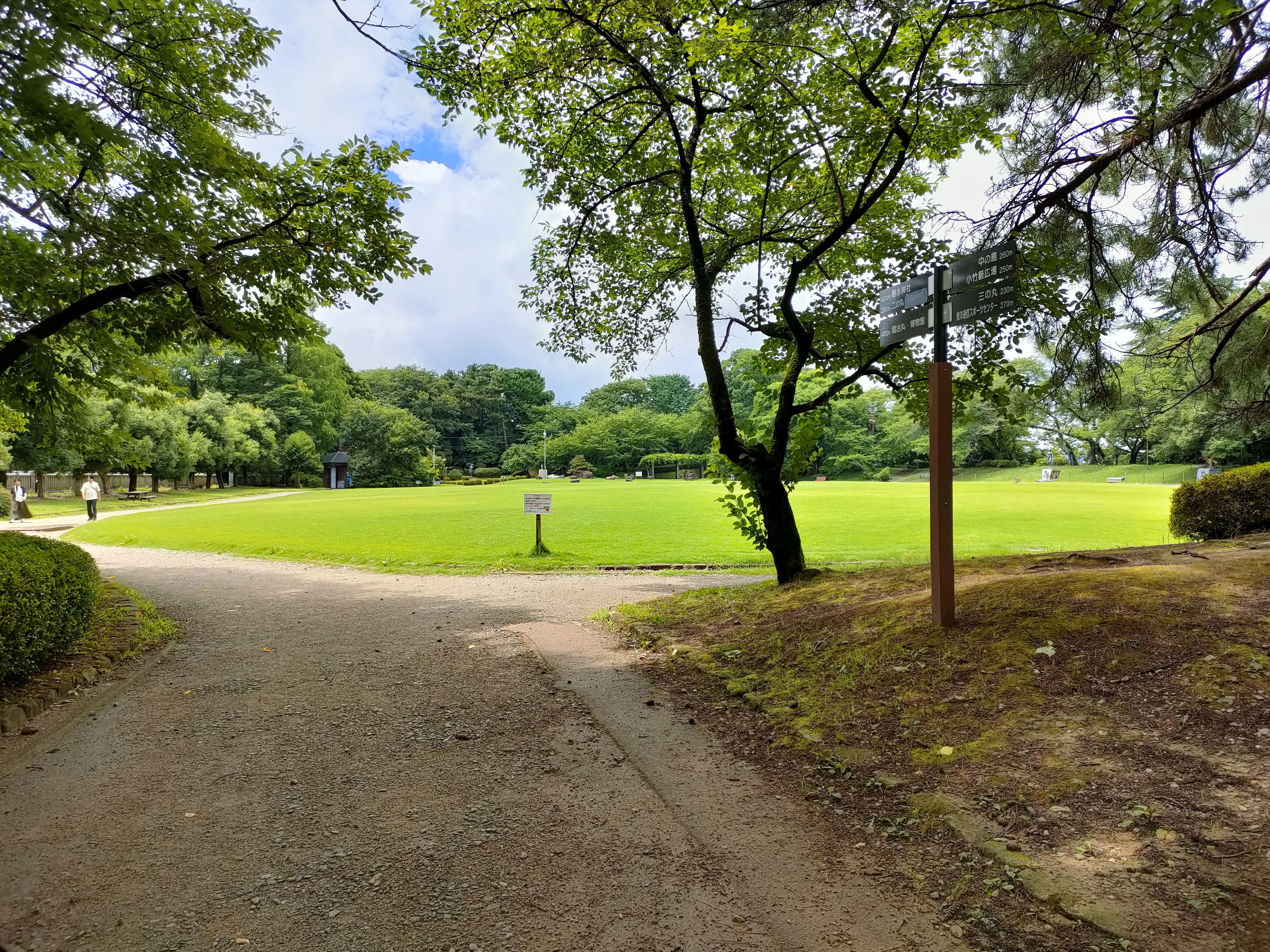 今回の散歩はここを始点としてぶらっと歩いてきました。とにかく暑い日でしたので、公園内をくまなくとはいきませんでしたが、看板にあった「ジョギングコース」に沿ってぐるっとまわってきました。